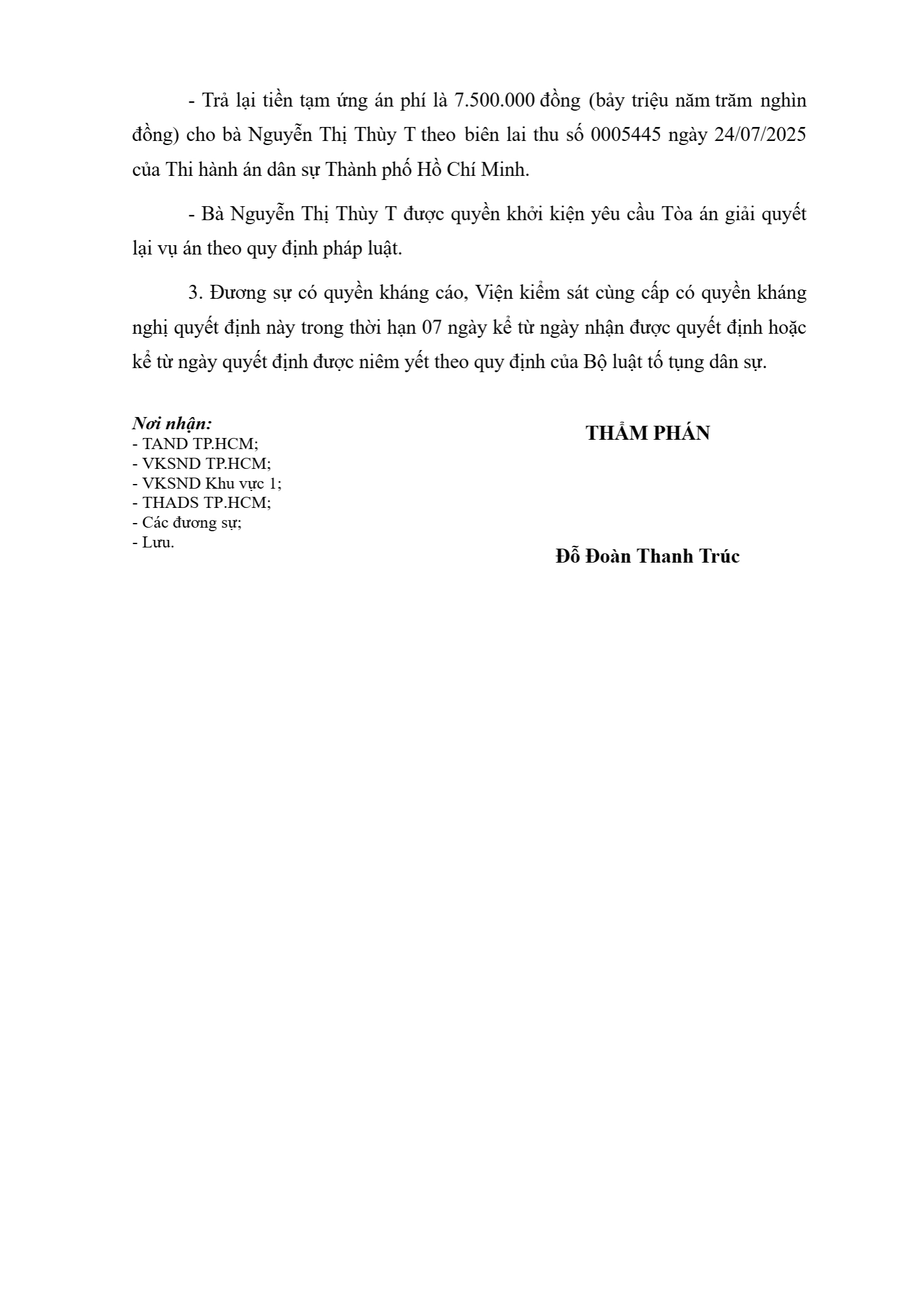 | Tòa án xét xử: | Tòa án nhân dân khu vực 1 - Hồ Chí Minh, TP. Hồ Chí Minh |