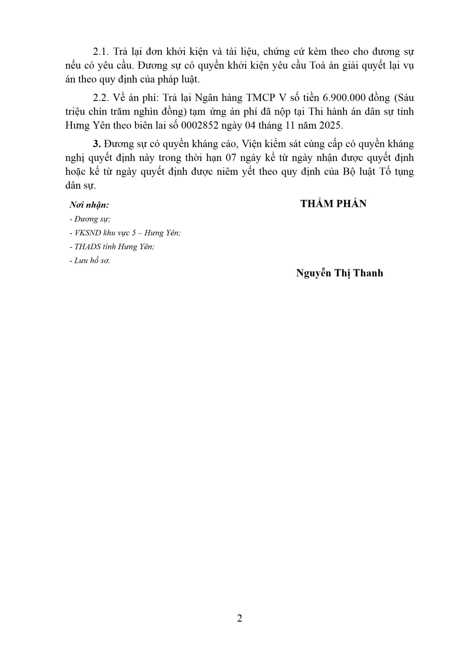 | Thông tin về vụ/việc: | Ngân hàng TV - Trần Hồng Q |