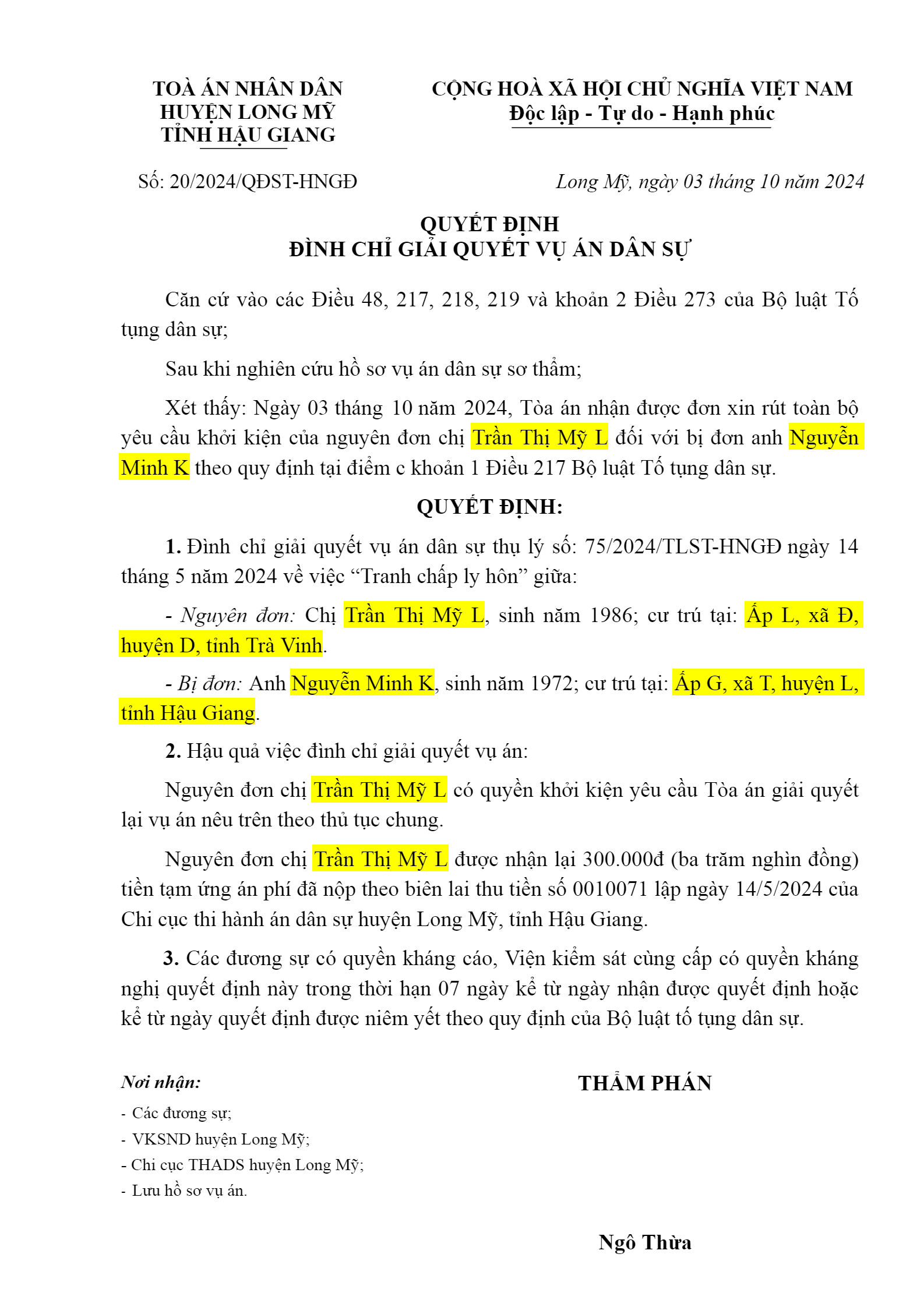 | Tòa án xét xử: | TAND huyện Long Mỹ (TAND tỉnh Hậu Giang) |