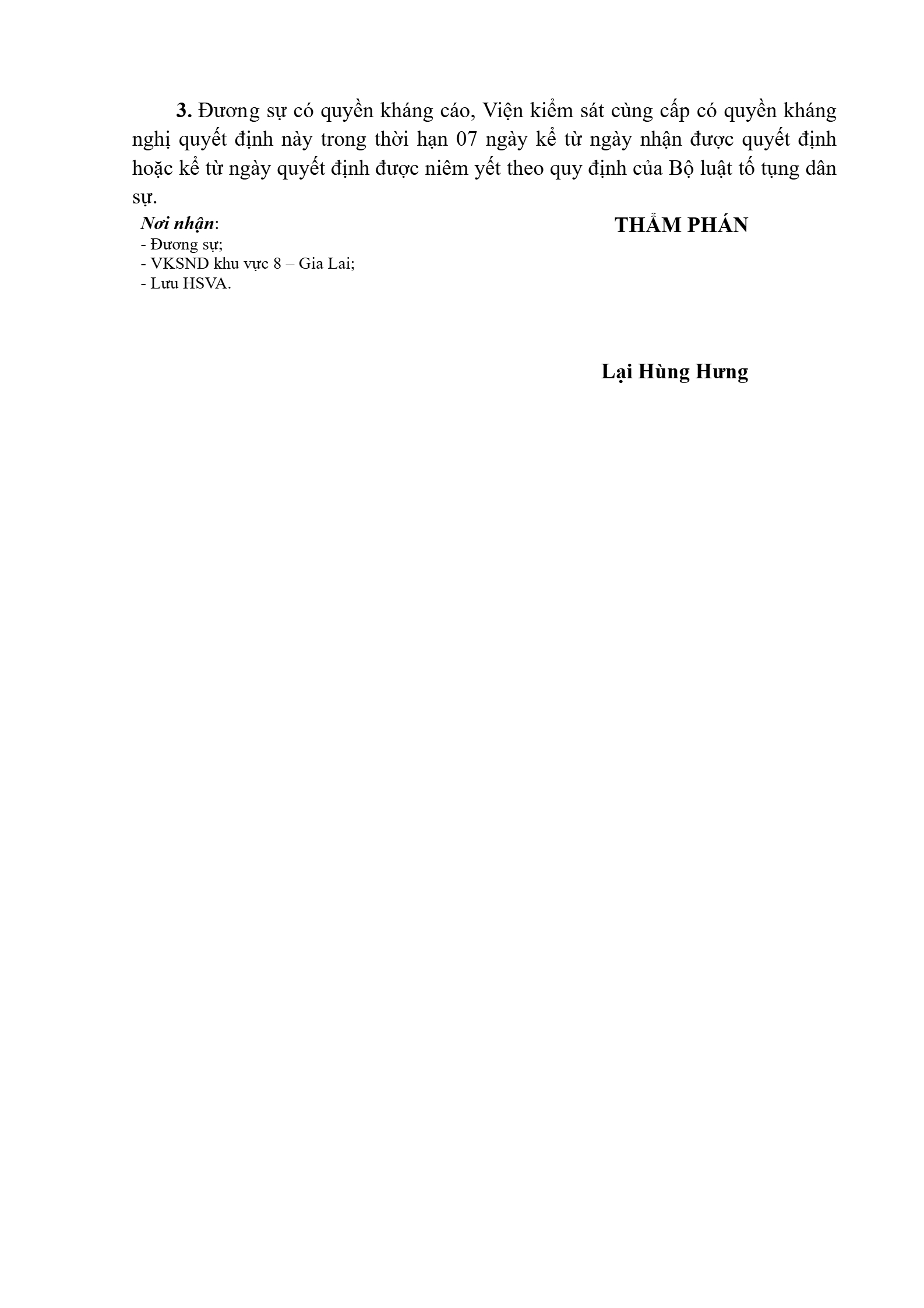 | Tòa án xét xử: | Tòa án nhân dân khu vực 8 - Gia Lai, tỉnh Gia Lai |