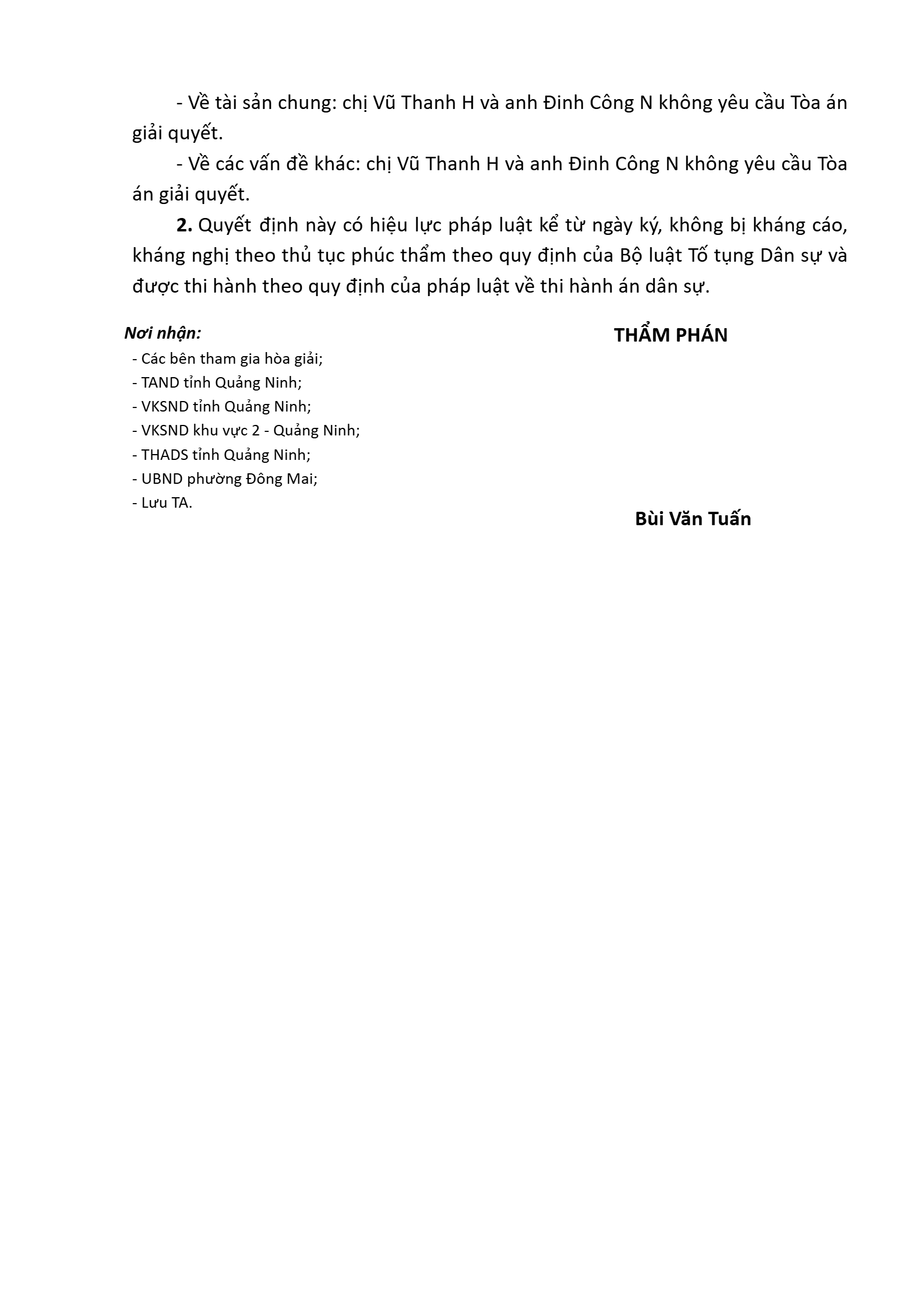 | Thông tin về vụ/việc: | Đinh Thị H và Lê Văn N |