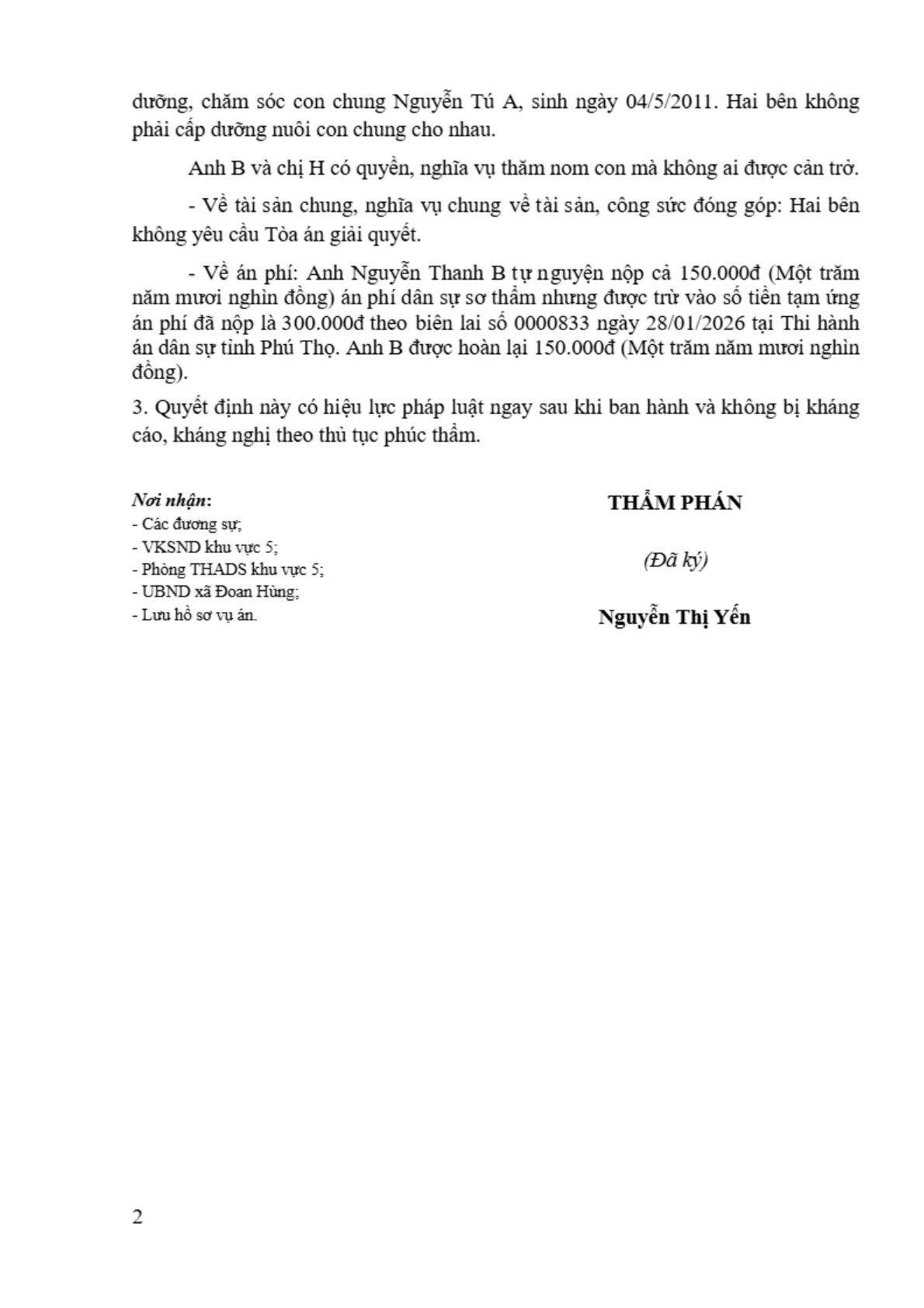 | Tòa án xét xử: | Tòa án nhân dân khu vực 5 - Phú Thọ, tỉnh Phú Thọ |