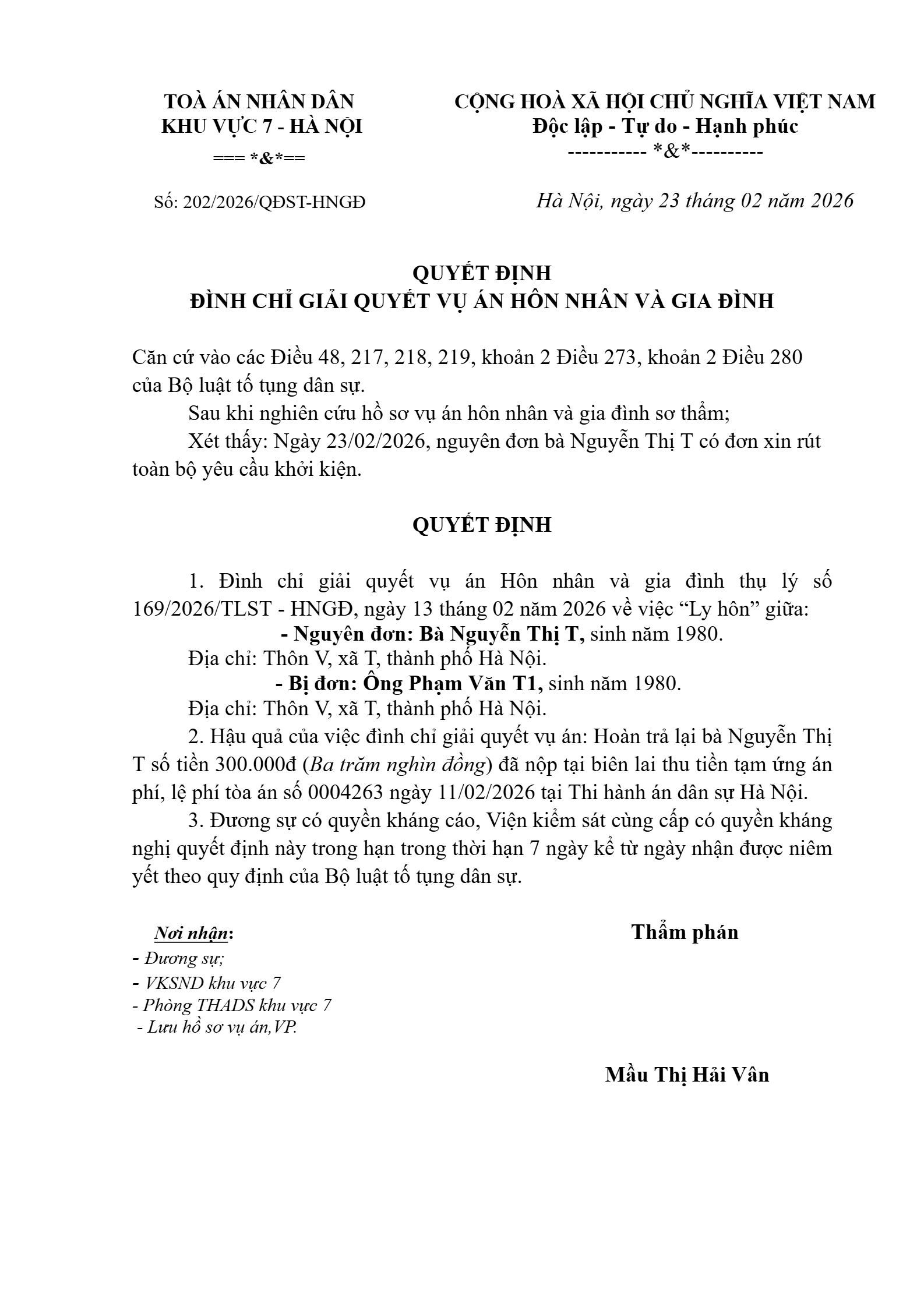 | Số hiệu: | 202/2026/QĐST-HNGĐ |