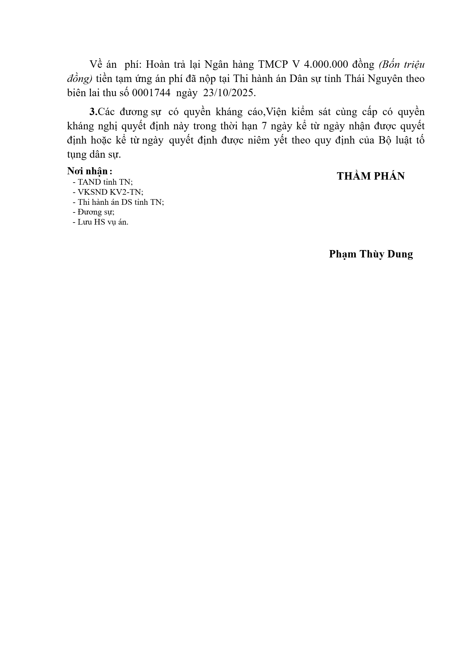 | Tòa án xét xử: | Tòa án nhân dân khu vực 2 - Thái Nguyên, tỉnh Thái Nguyên |