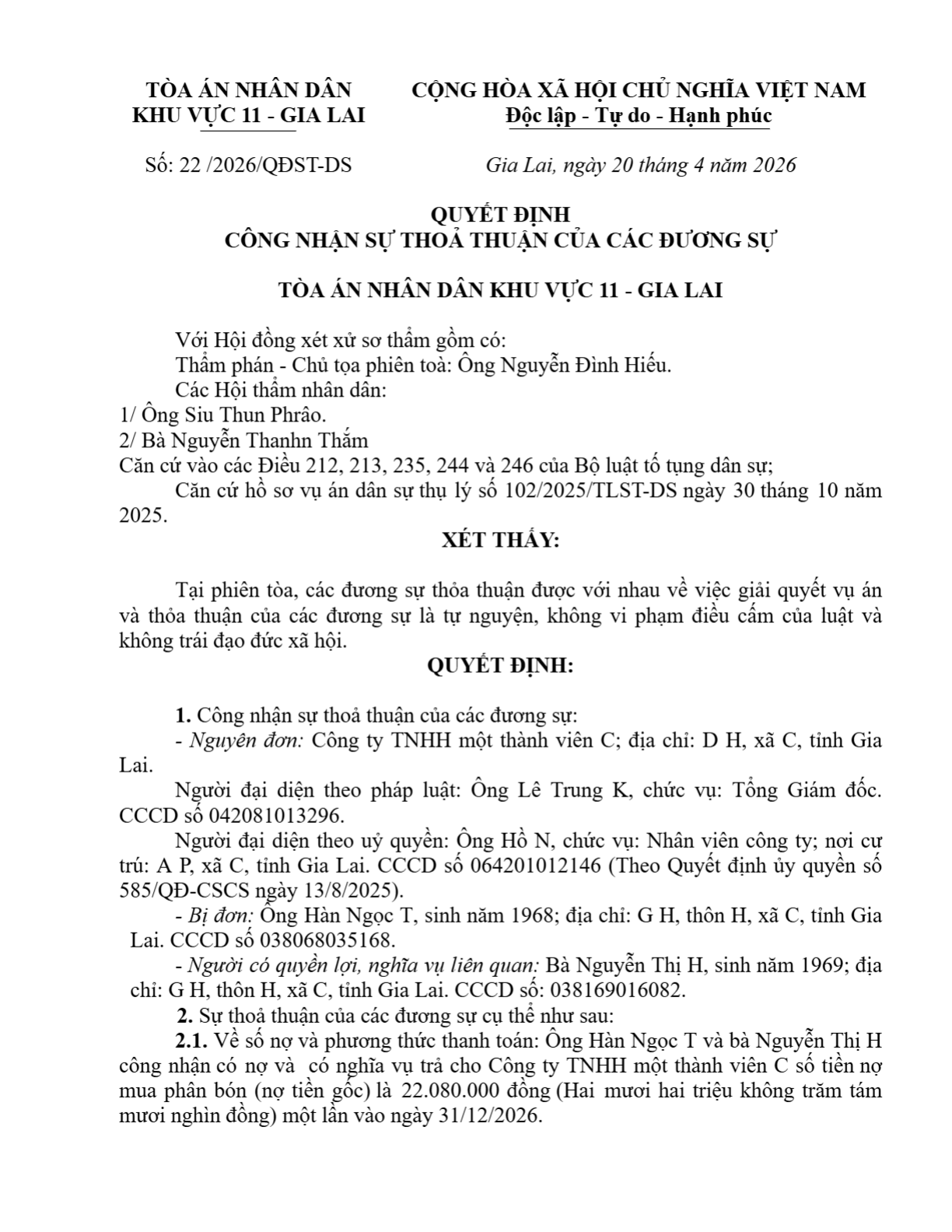 | Tòa án xét xử: | Tòa án nhân dân khu vực 11 - Gia Lai, tỉnh Gia Lai |
