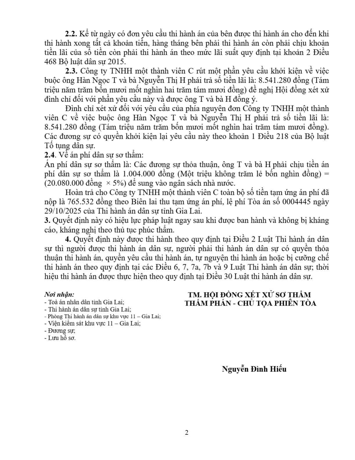| Cấp xét xử: | Sơ thẩm |