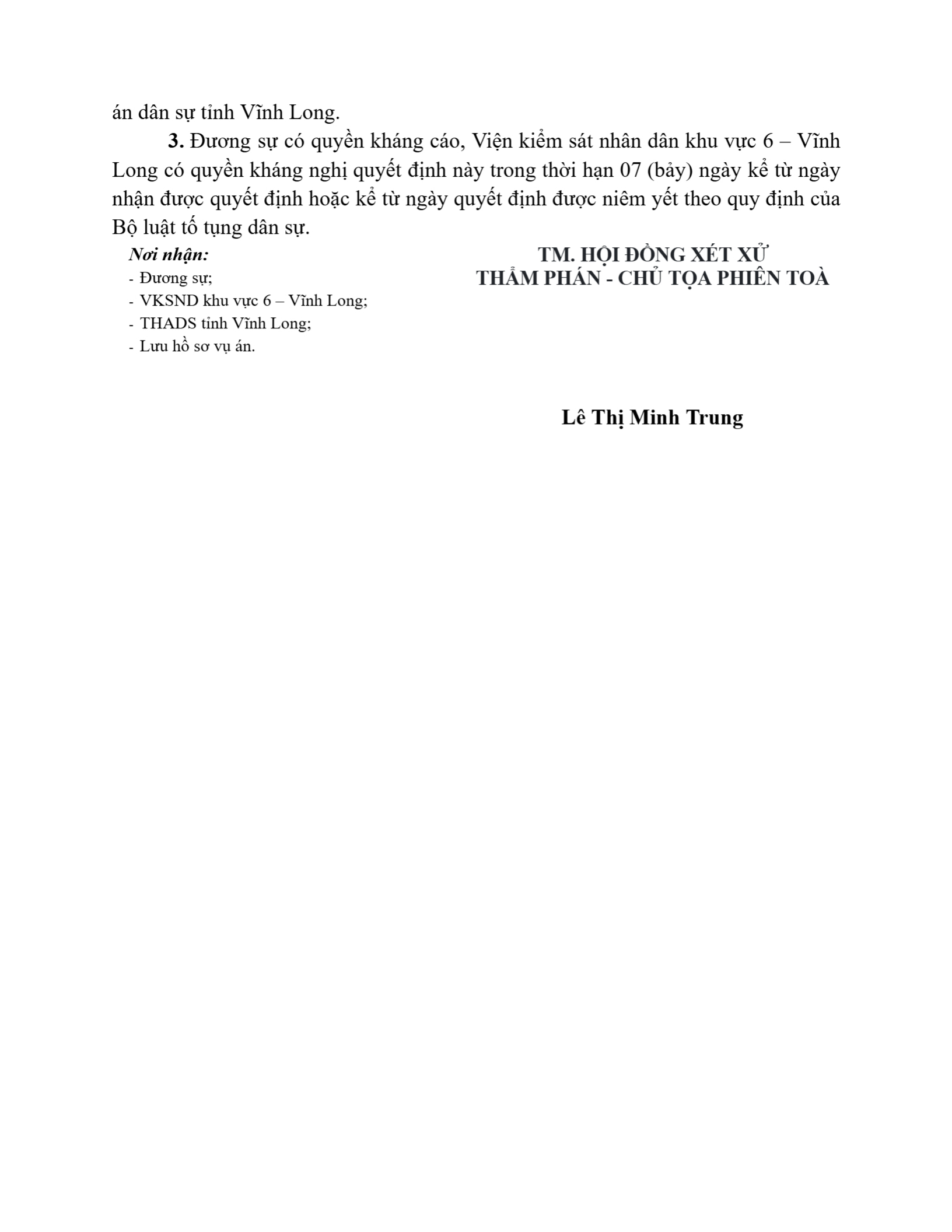 | Tòa án xét xử: | Tòa án nhân dân khu vực 6 - Vĩnh Long, tỉnh Vĩnh Long |
