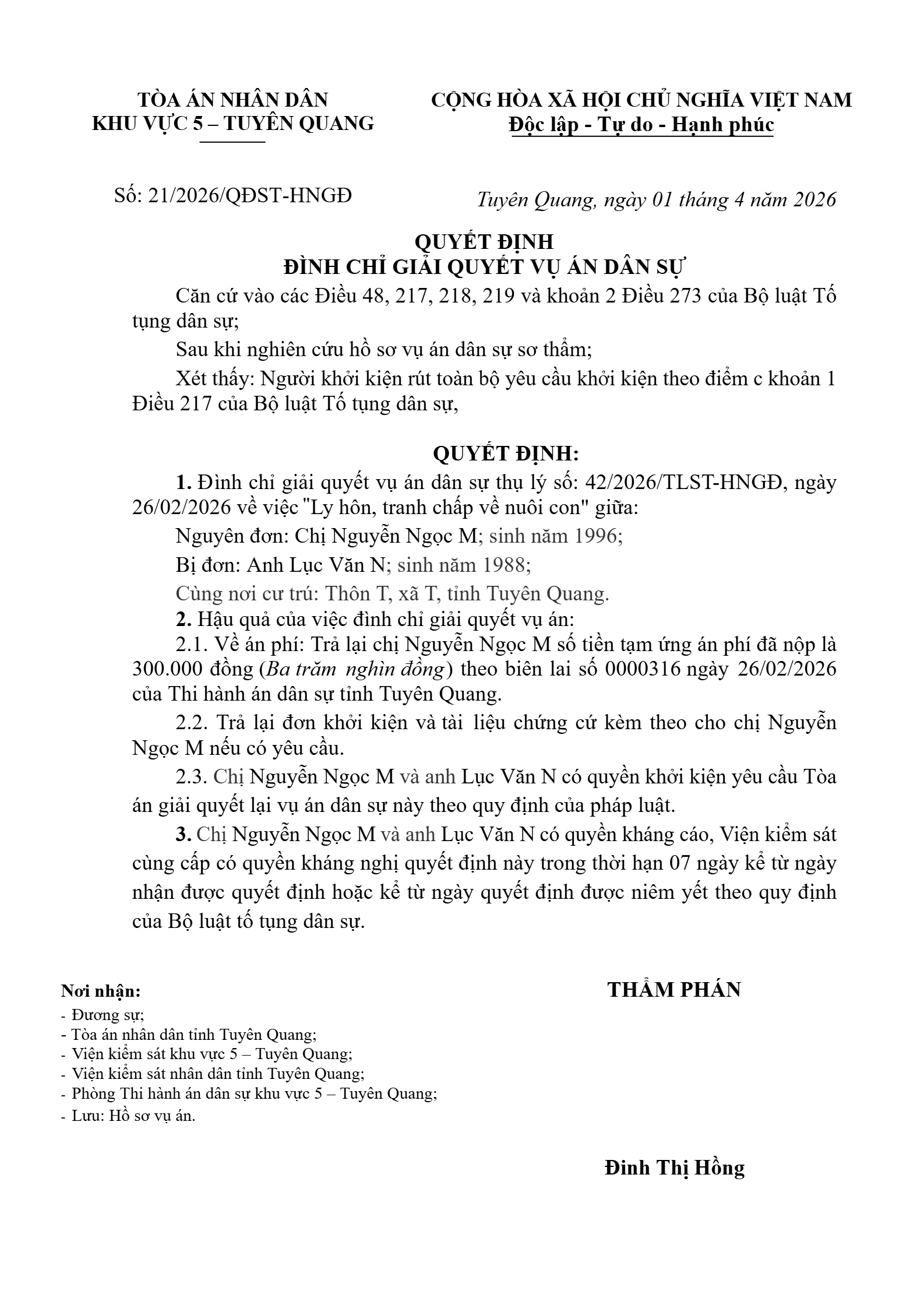 Quyết định số 21/2026/QĐST-HNGĐ
