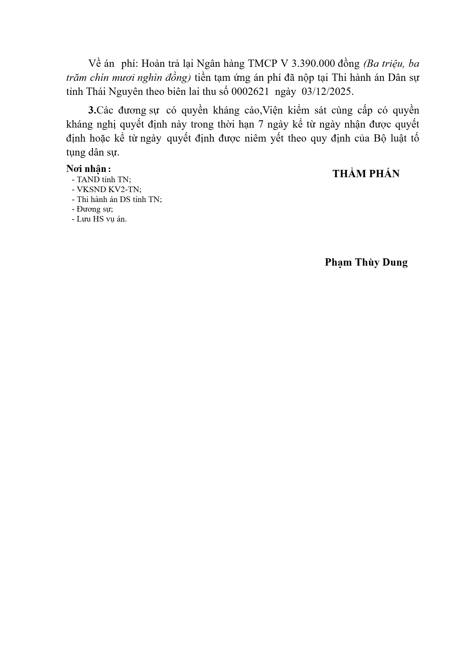 | Tòa án xét xử: | Tòa án nhân dân khu vực 2 - Thái Nguyên, tỉnh Thái Nguyên |