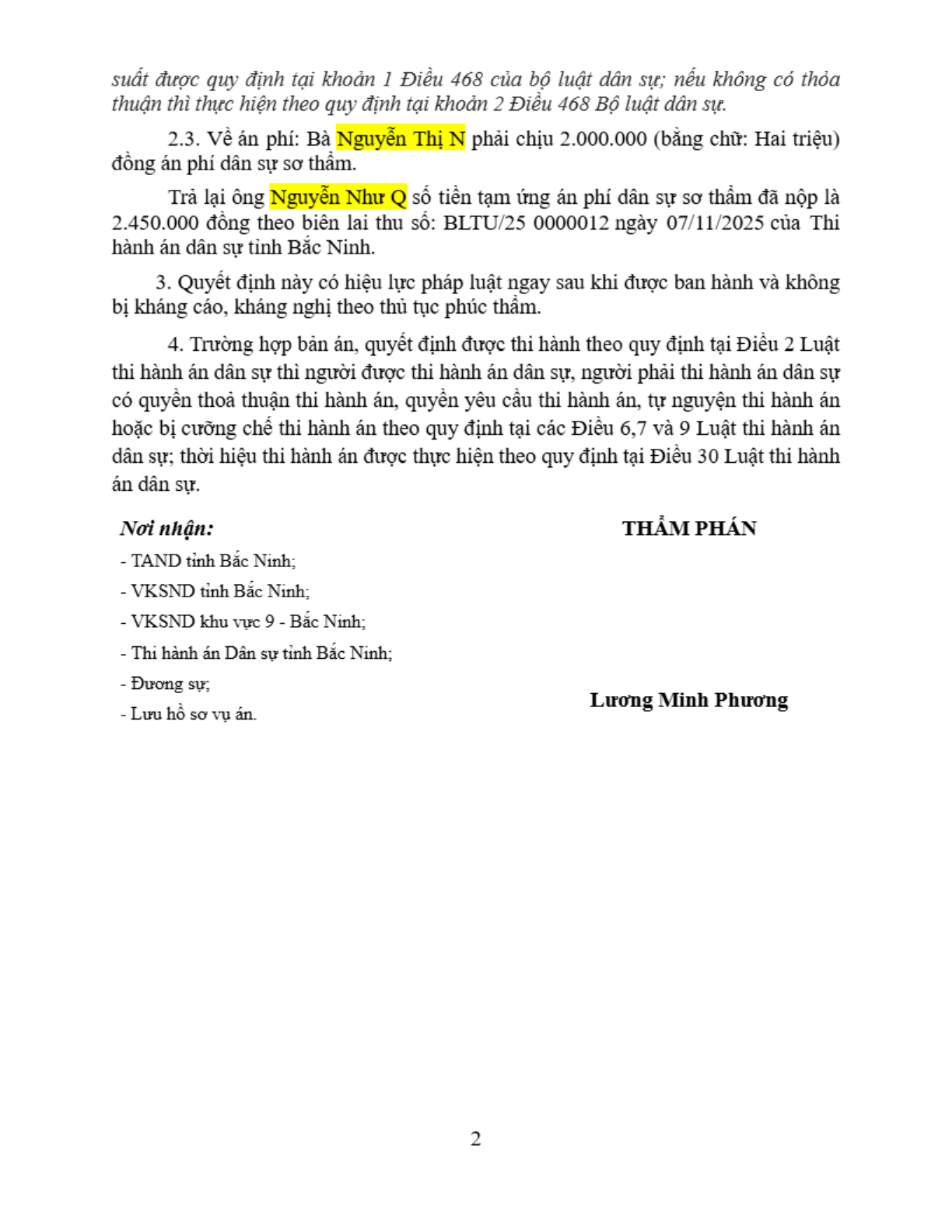 | Thông tin về vụ/việc: | Nguyễn Như Quỳnh kiện đòi tiền Nguyễn Thị Nghĩa |