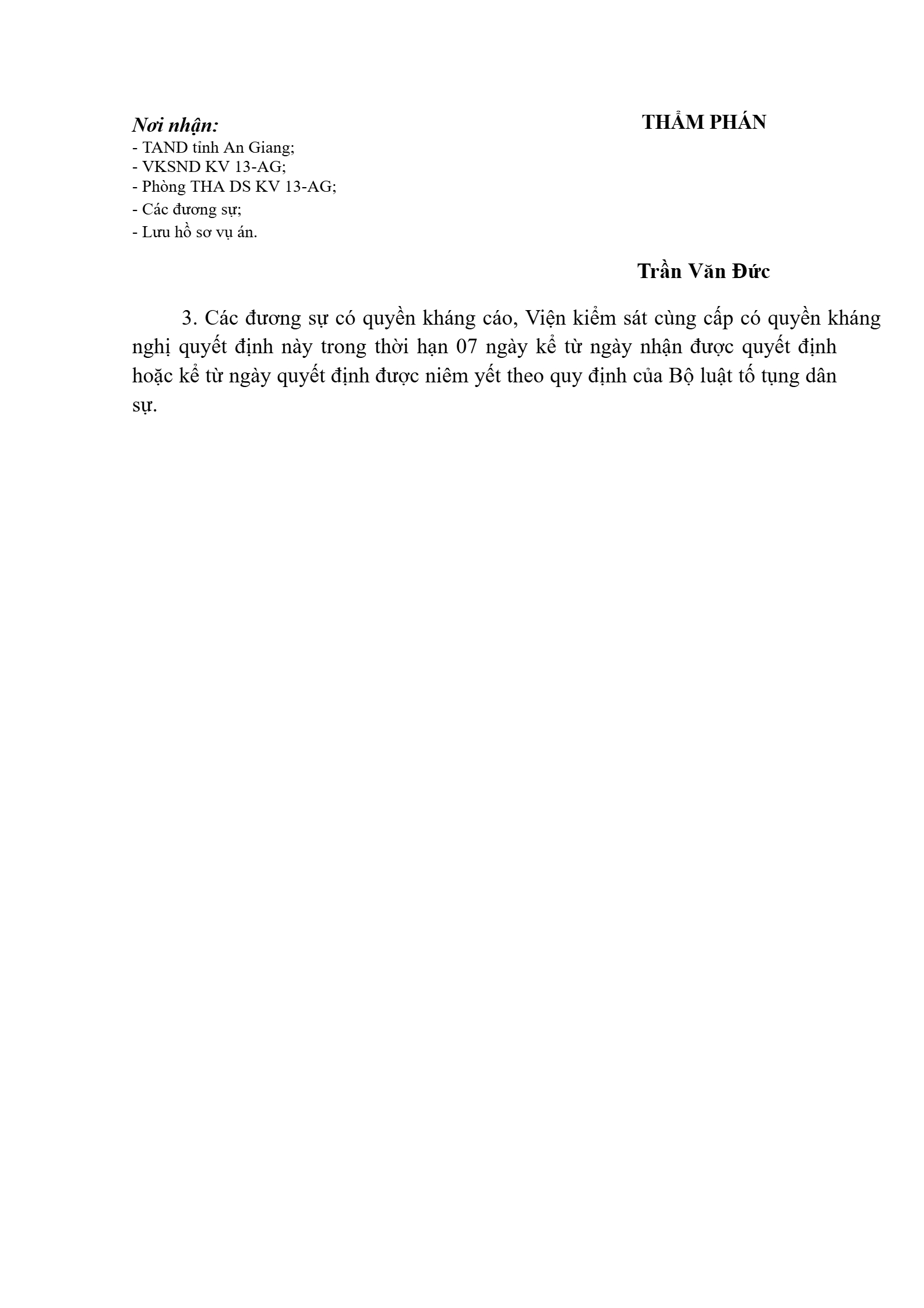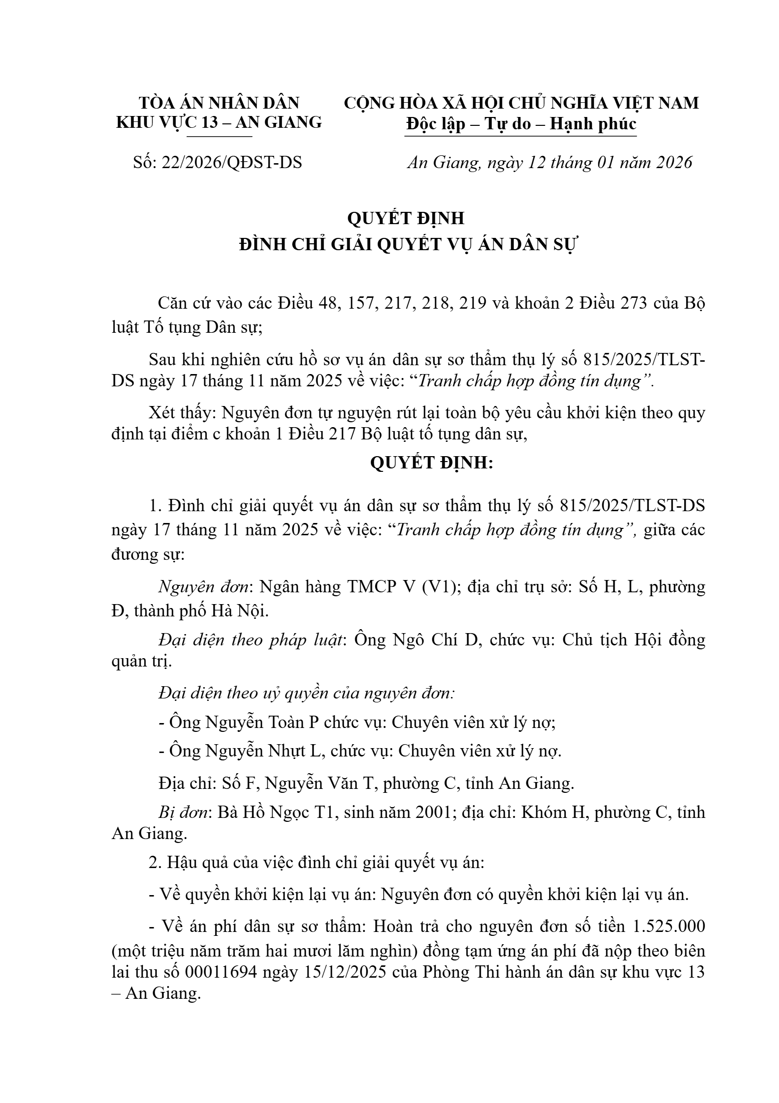 | Thông tin về vụ/việc: | QĐ ĐC Vbank-Tr |
