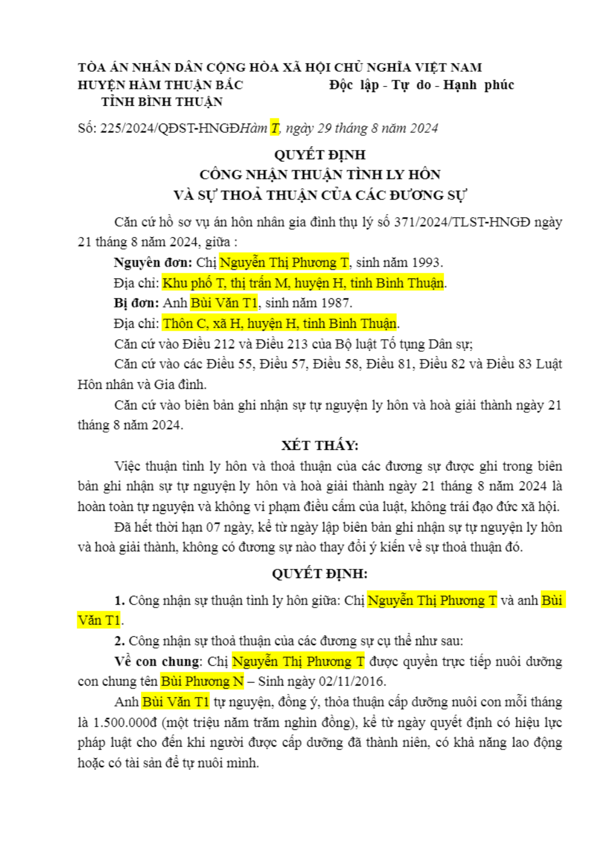 | Tòa án xét xử: | TAND huyện Hàm Thuận Bắc (TAND tỉnh Bình Thuận) |