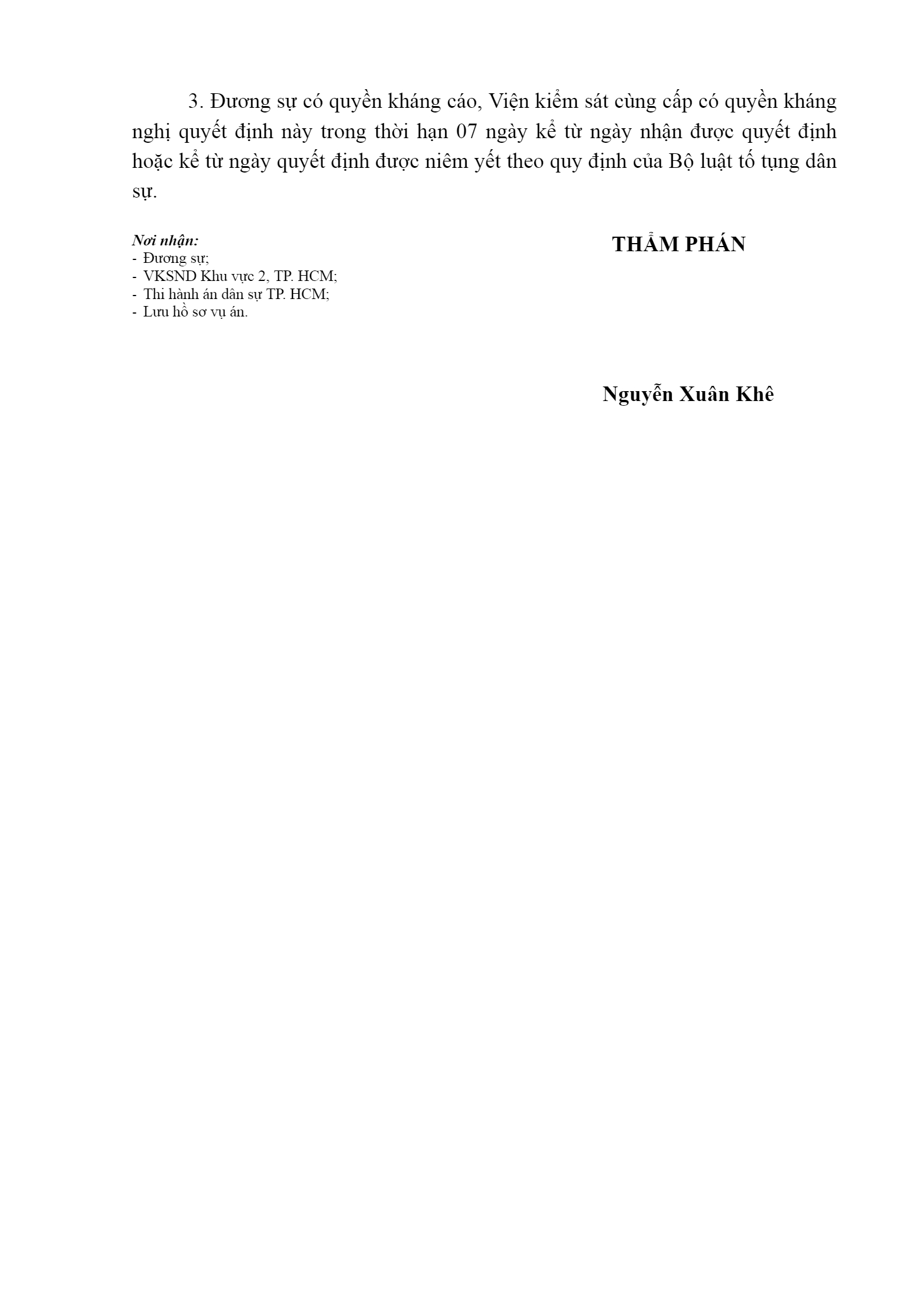 | Tòa án xét xử: | Tòa án nhân dân khu vực 2 - Hồ Chí Minh, TP. Hồ Chí Minh |