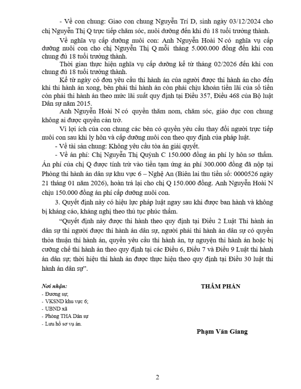 | Tòa án xét xử: | Tòa án nhân dân khu vực 6 - Nghệ An, tỉnh Nghệ An |