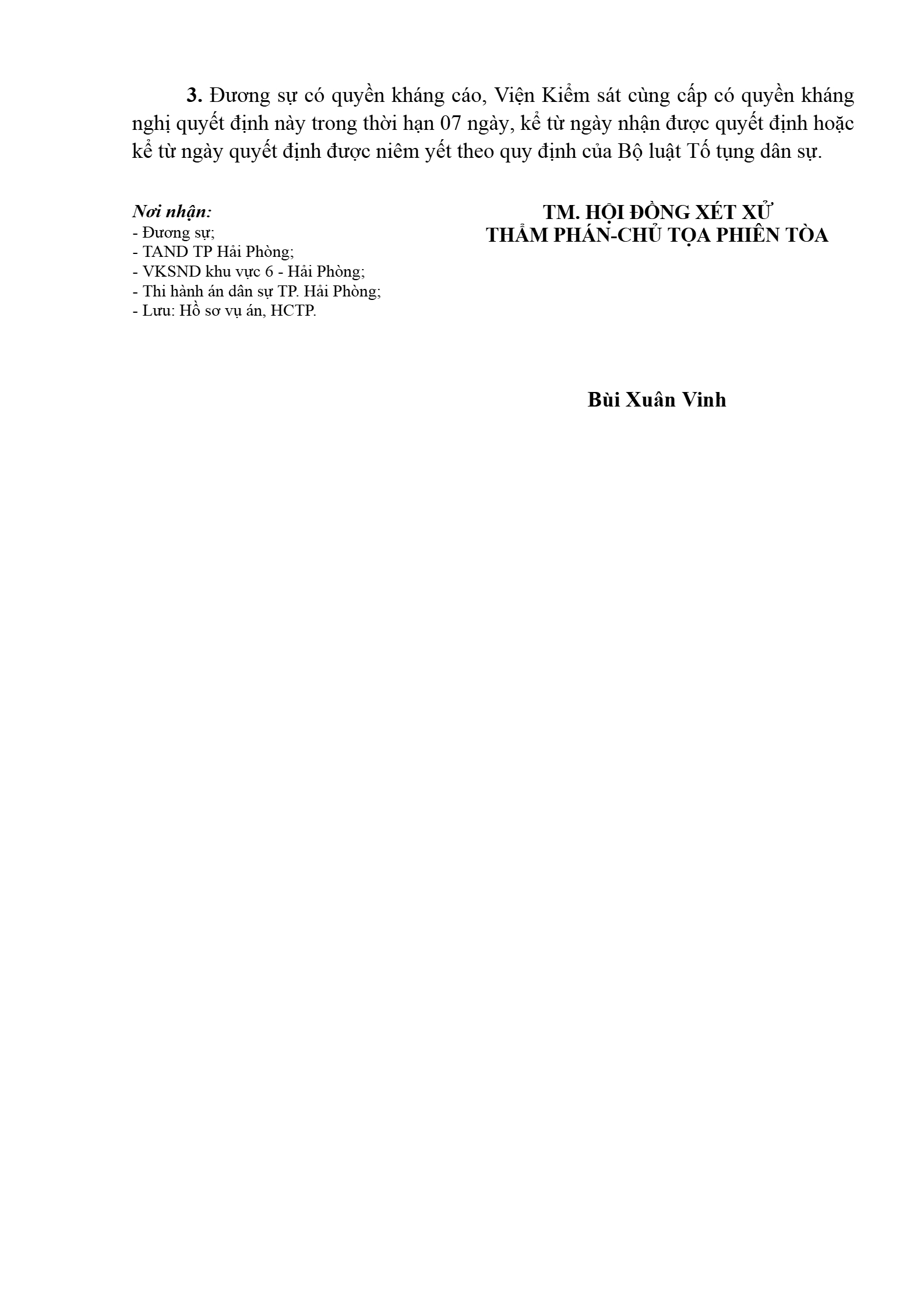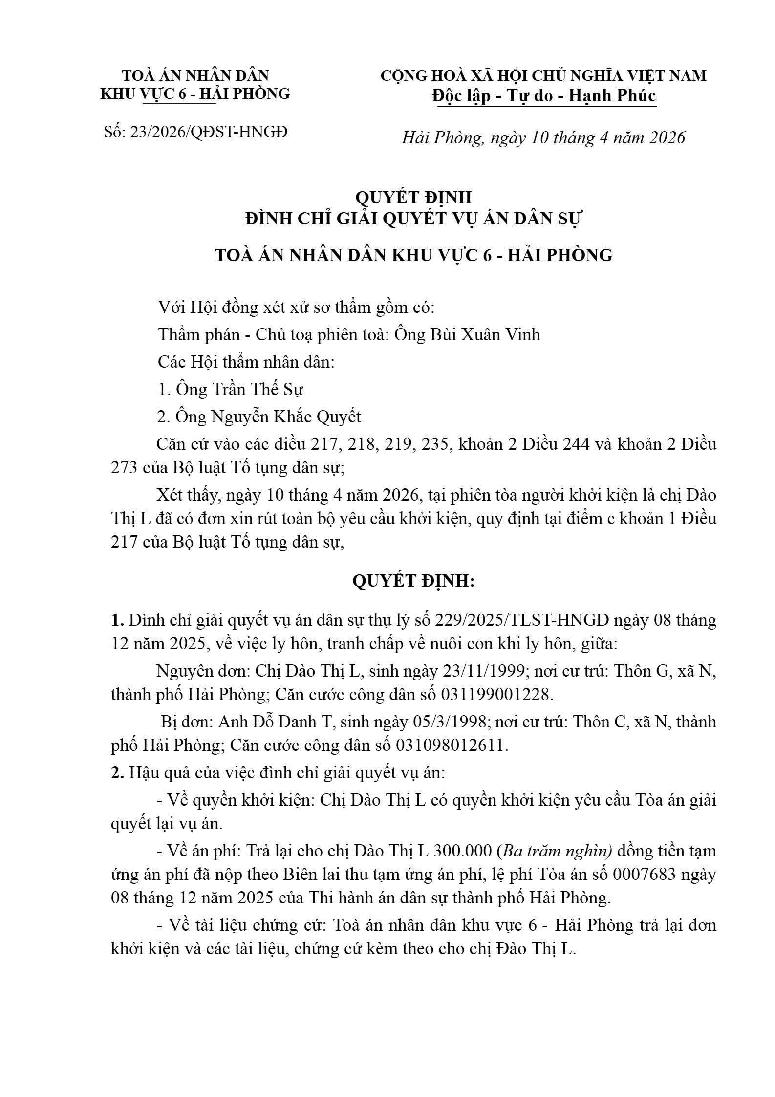 | Tòa án xét xử: | Tòa án nhân dân khu vực 6 - Hải Phòng, TP. Hải Phòng |