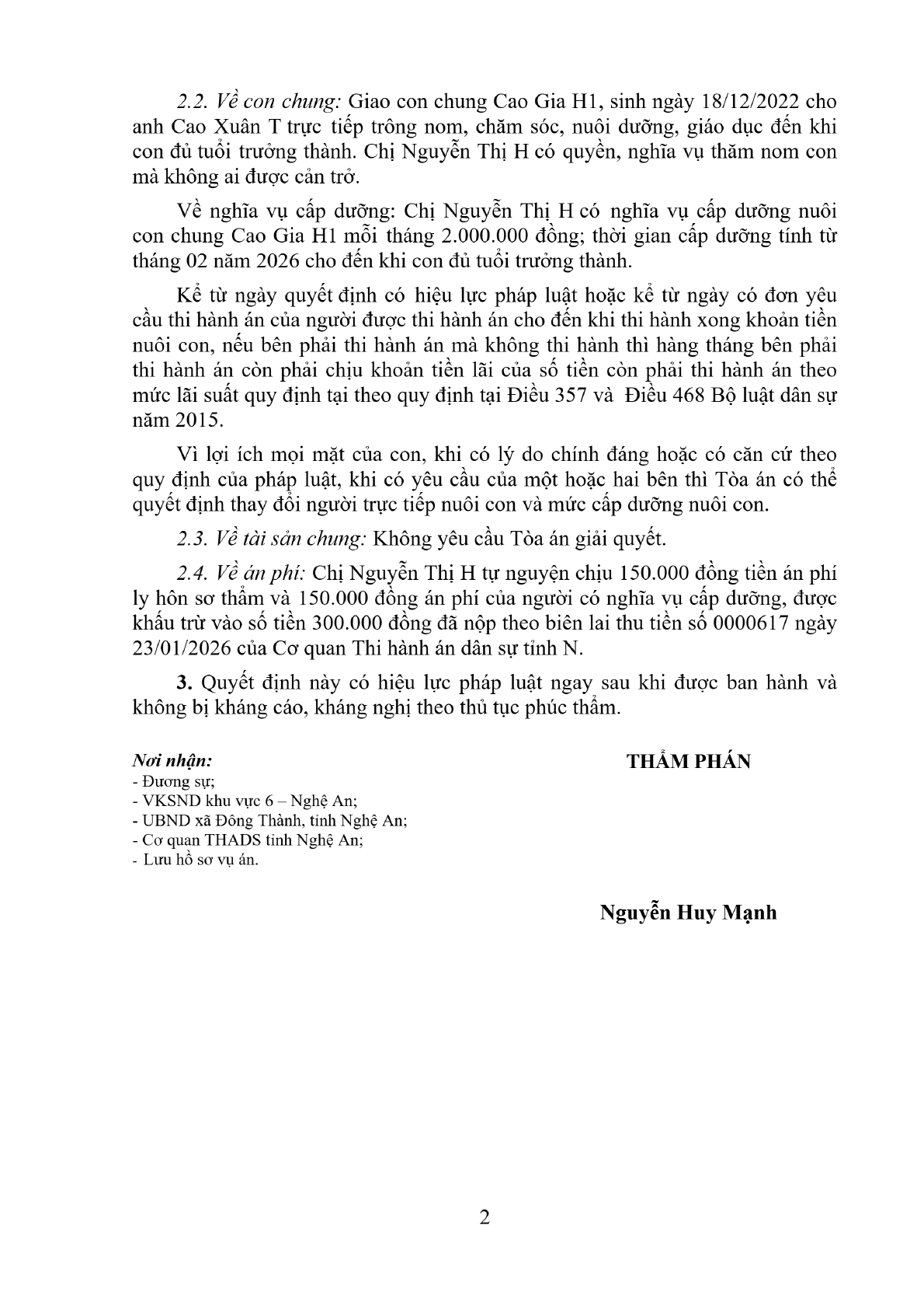| Tòa án xét xử: | Tòa án nhân dân khu vực 6 - Nghệ An, tỉnh Nghệ An |
