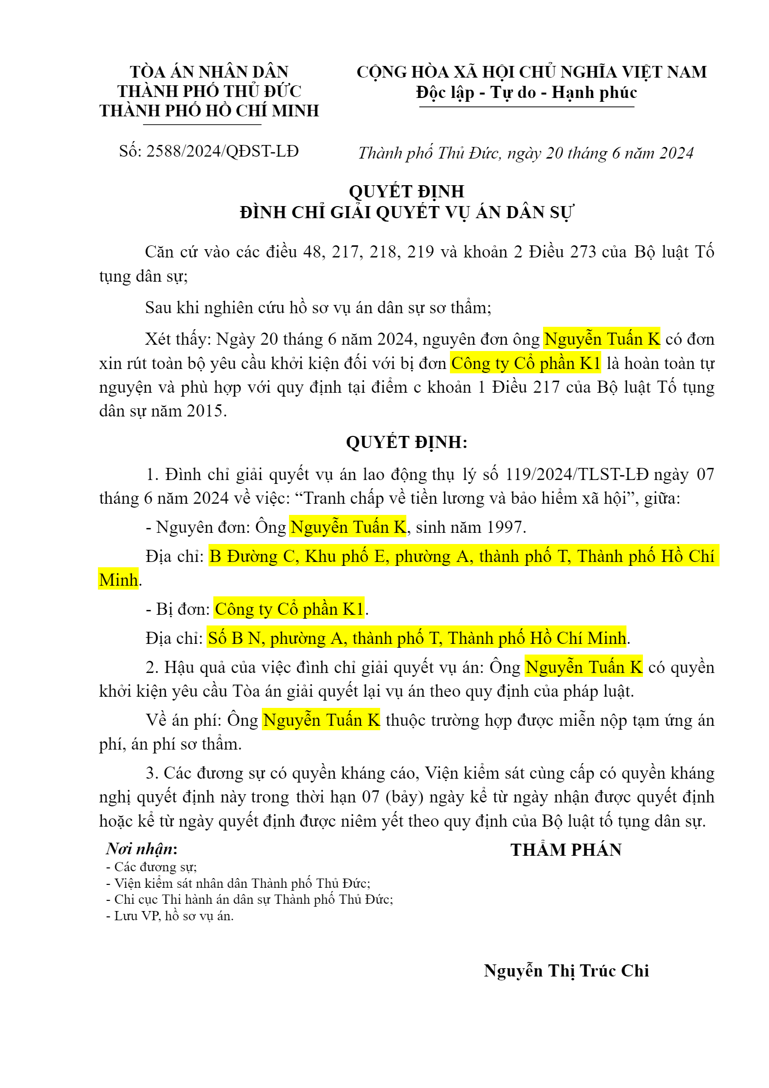 | Tòa án xét xử: | TAND TP. Thủ Đức (TAND TP. Hồ Chí Minh) |