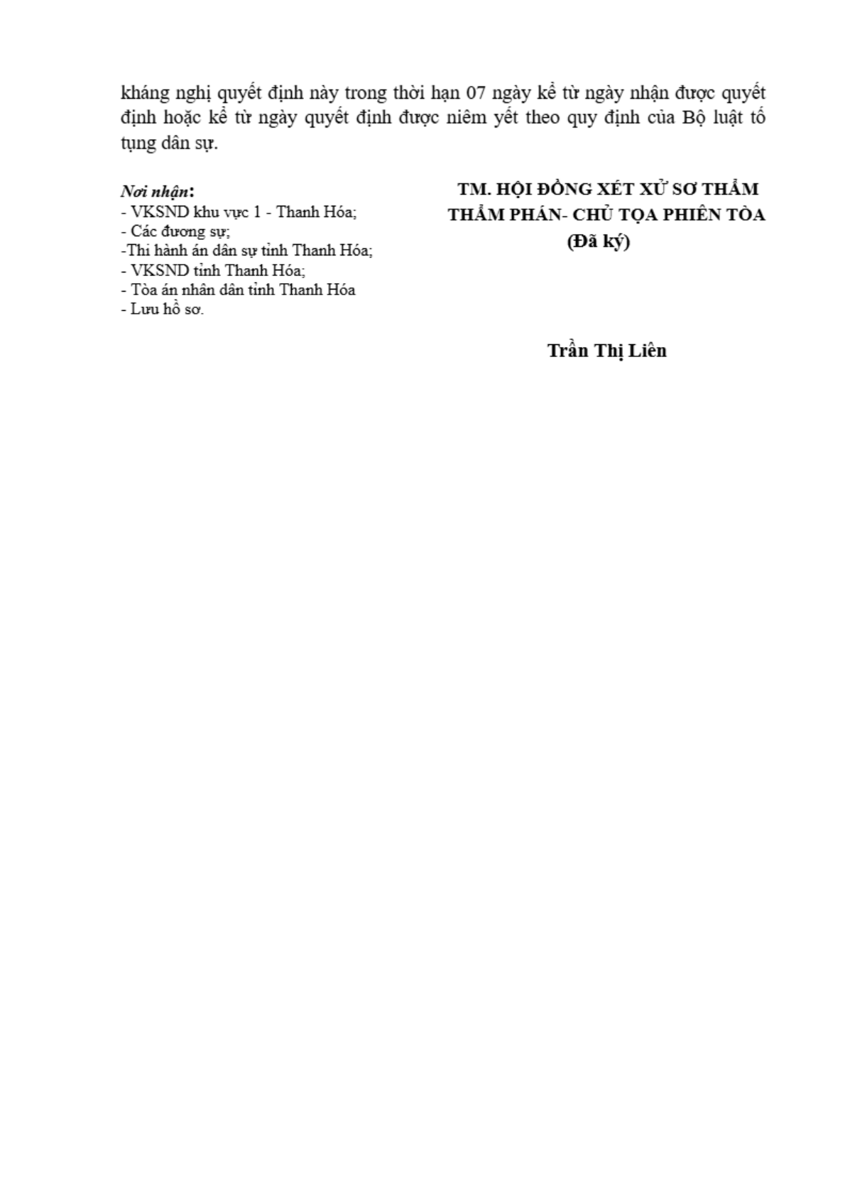 | Tòa án xét xử: | Tòa án nhân dân khu vực 1 - Thanh Hóa, tỉnh Thanh Hóa |