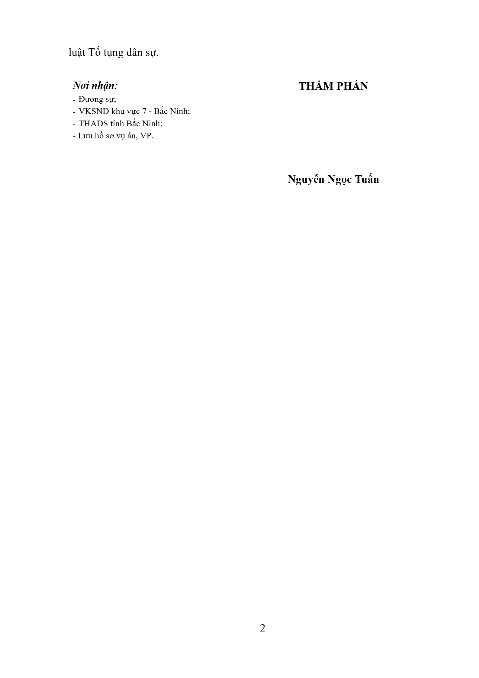| Tòa án xét xử: | Tòa án nhân dân khu vực 7 - Bắc Ninh, tỉnh Bắc Ninh |