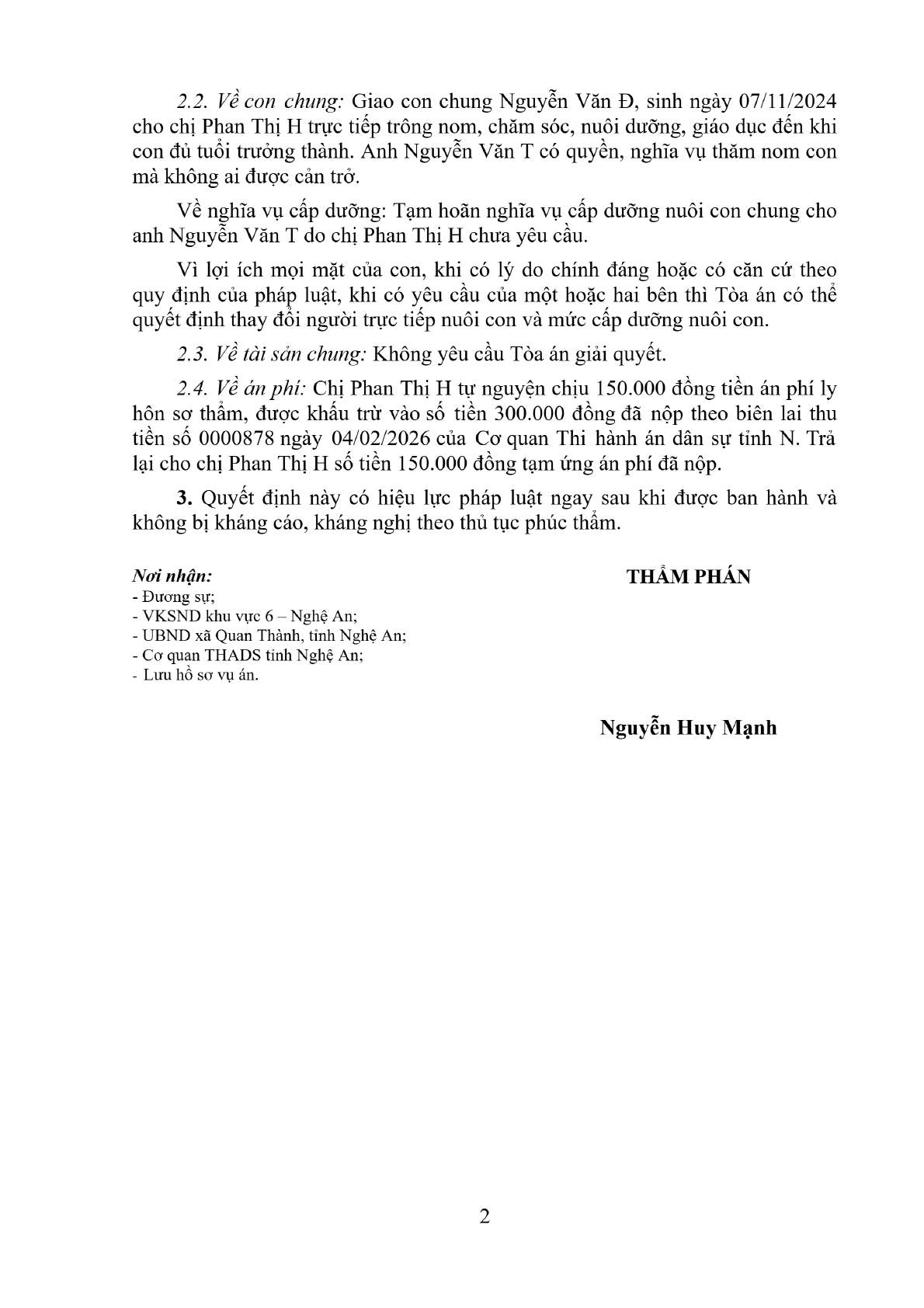 | Tòa án xét xử: | Tòa án nhân dân khu vực 6 - Nghệ An, tỉnh Nghệ An |