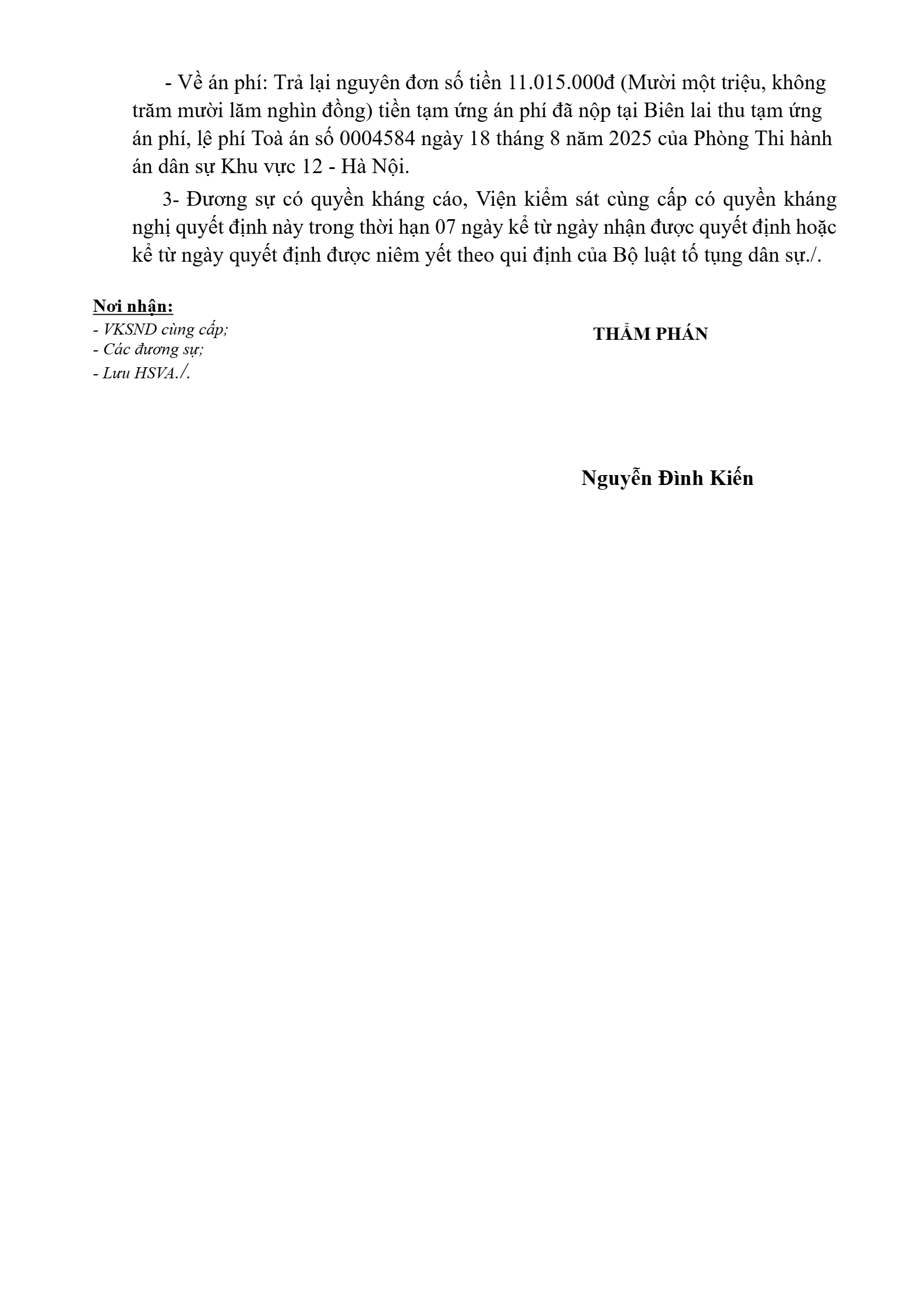 | Tòa án xét xử: | Tòa án nhân dân khu vực 12 - Hà Nội, TP. Hà Nội |