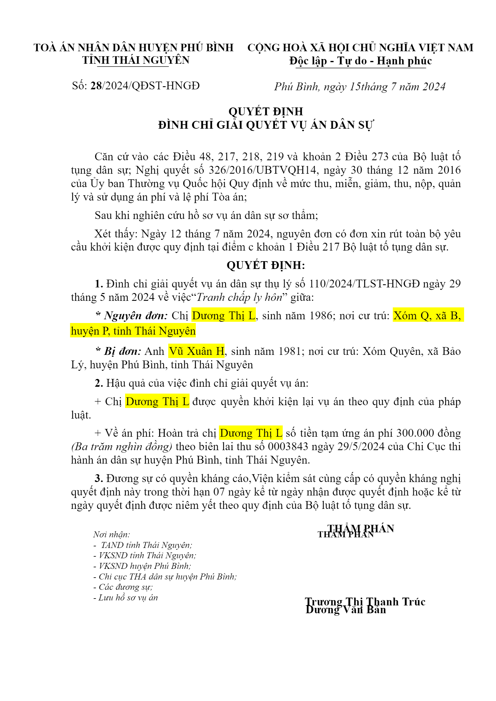 | Tòa án xét xử: | TAND huyện Phú Bình (TAND tỉnh Thái Nguyên) |