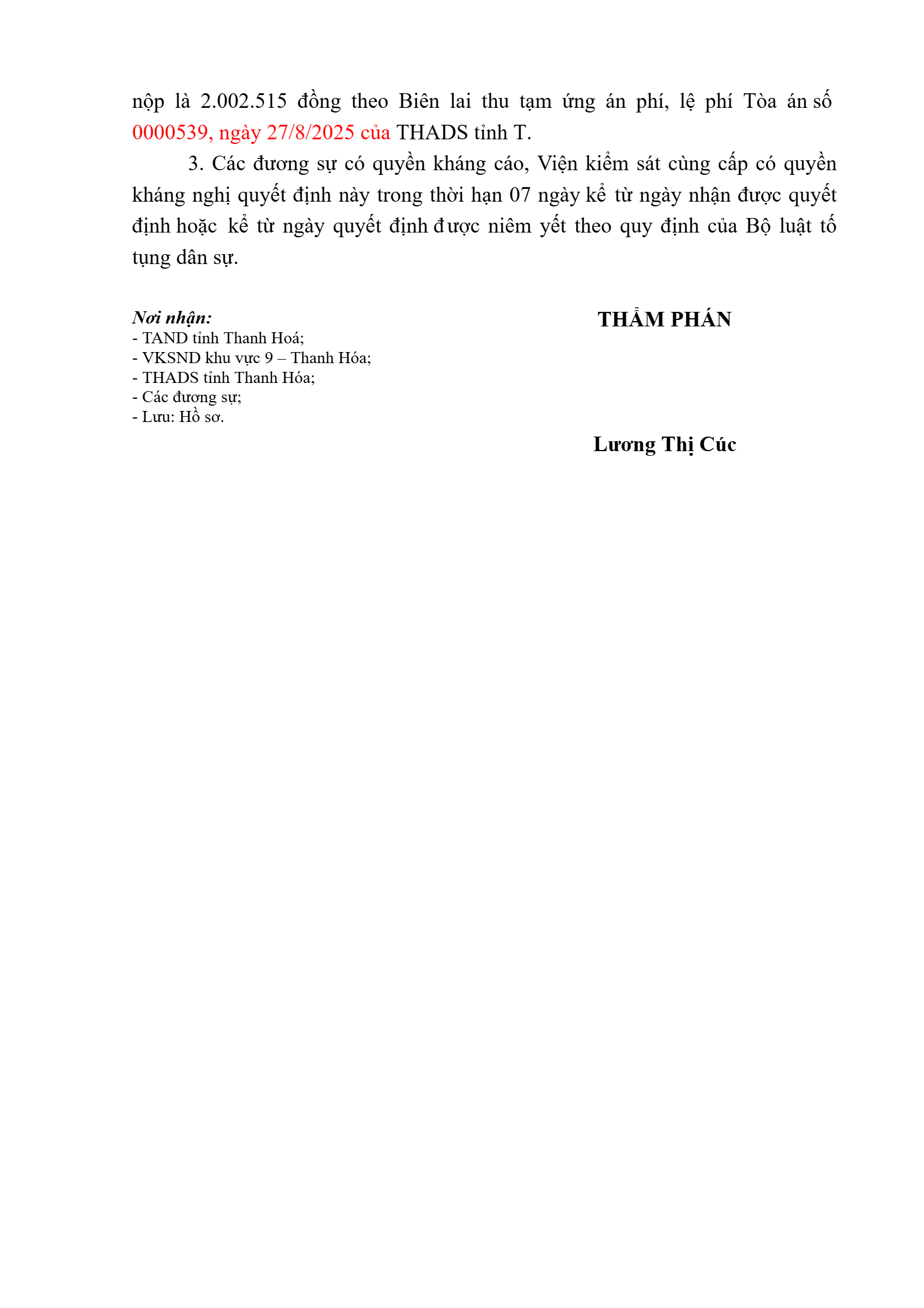 | Tòa án xét xử: | Tòa án nhân dân khu vực 9 - Thanh Hóa, tỉnh Thanh Hóa |
