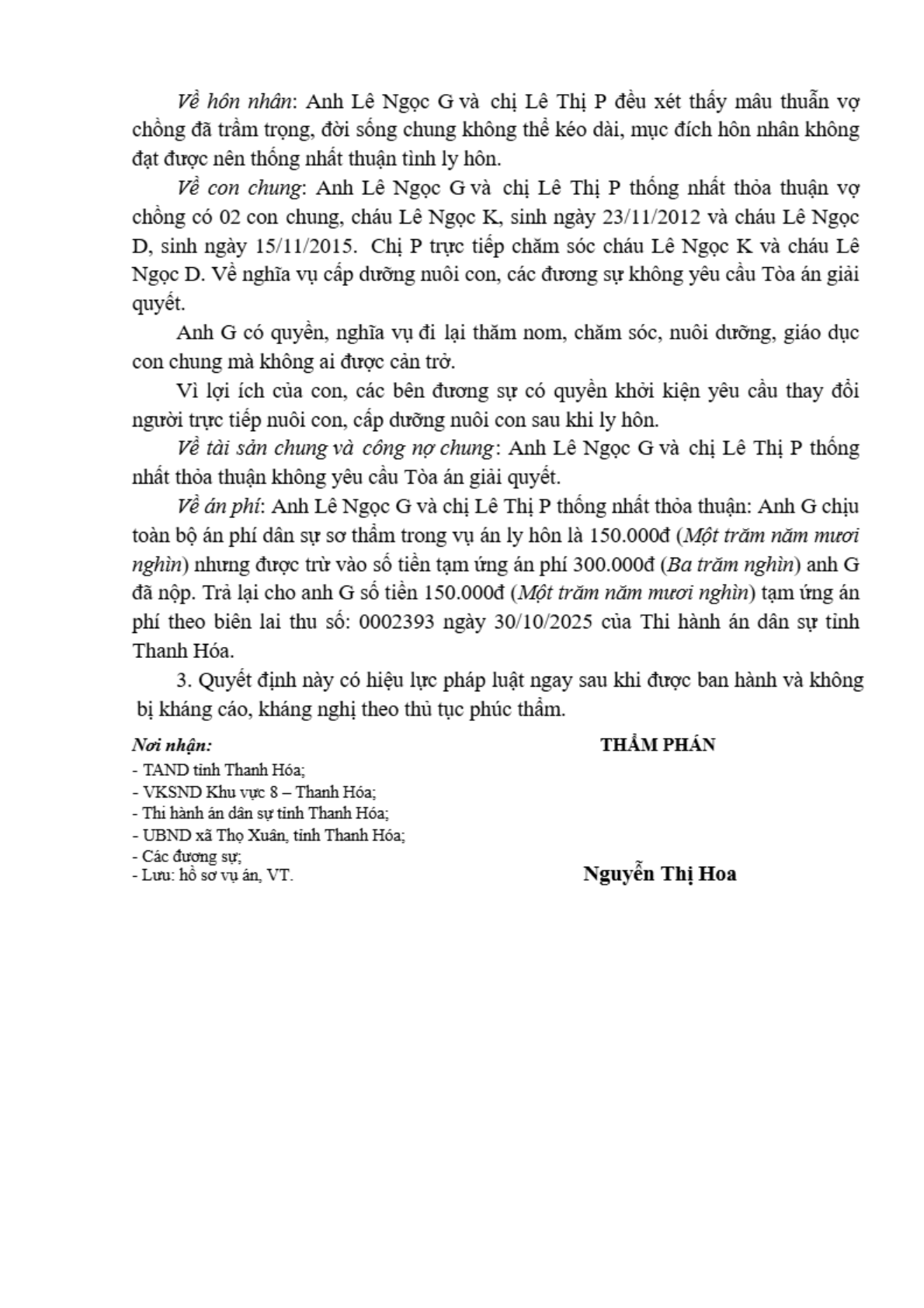 | Thông tin về vụ/việc: | 34. Ly hôn G - P |
