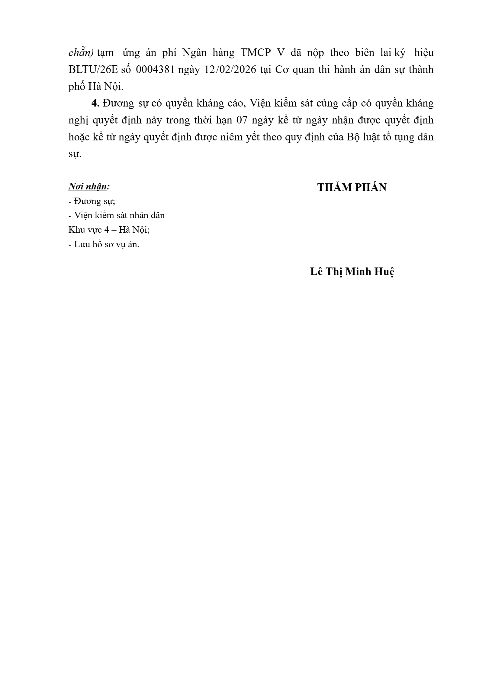 | Tòa án xét xử: | Tòa án nhân dân khu vực 4 - Hà Nội, TP. Hà Nội |
