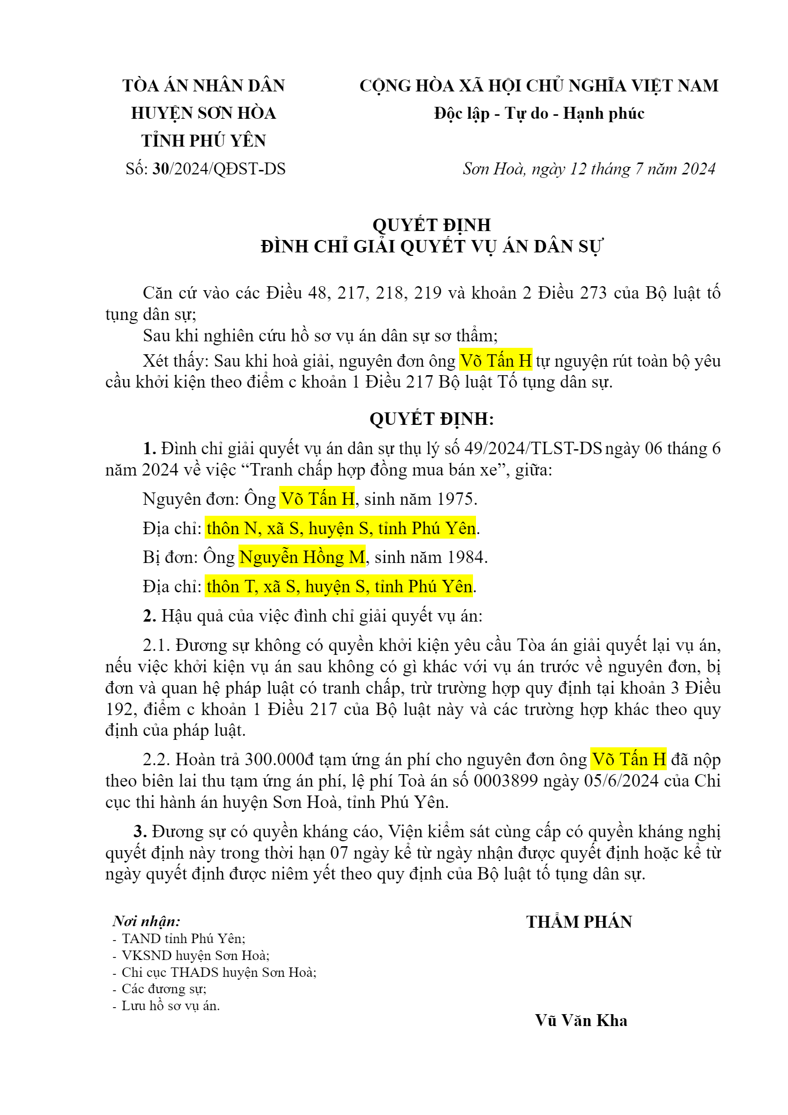 | Tòa án xét xử: | TAND huyện Sơn Hòa (TAND tỉnh Phú Yên) |