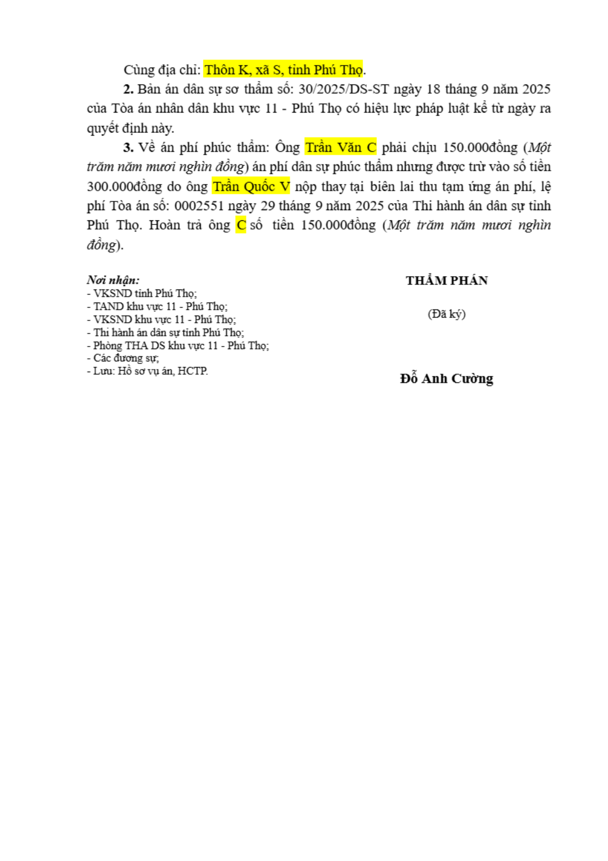| Tòa án xét xử: | TAND tỉnh Phú Thọ |