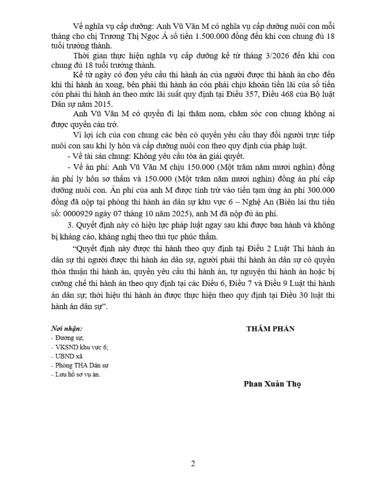 | Tòa án xét xử: | Tòa án nhân dân khu vực 6 - Nghệ An, tỉnh Nghệ An |