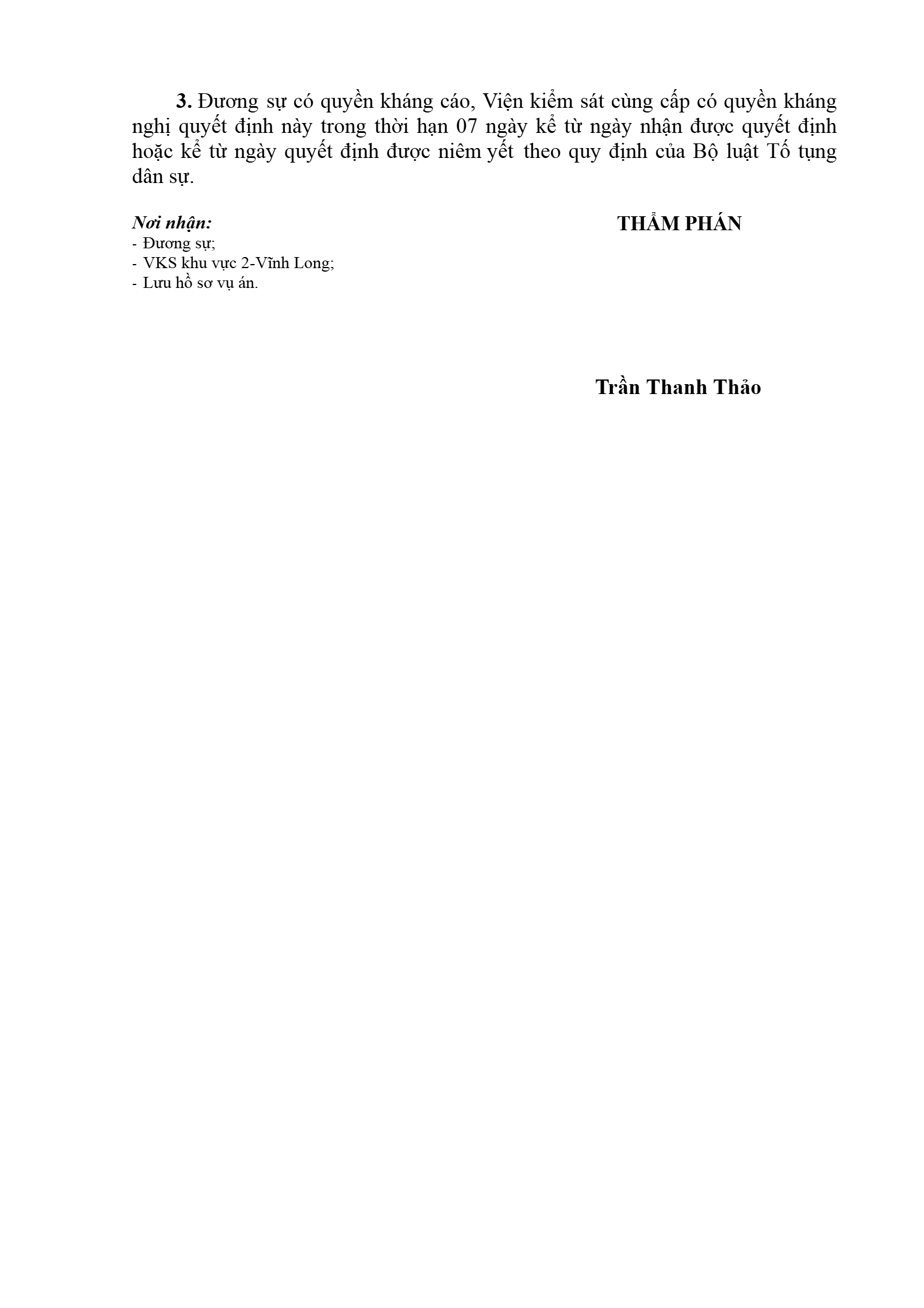 | Tòa án xét xử: | Tòa án nhân dân khu vực 2 - Vĩnh Long, tỉnh Vĩnh Long |