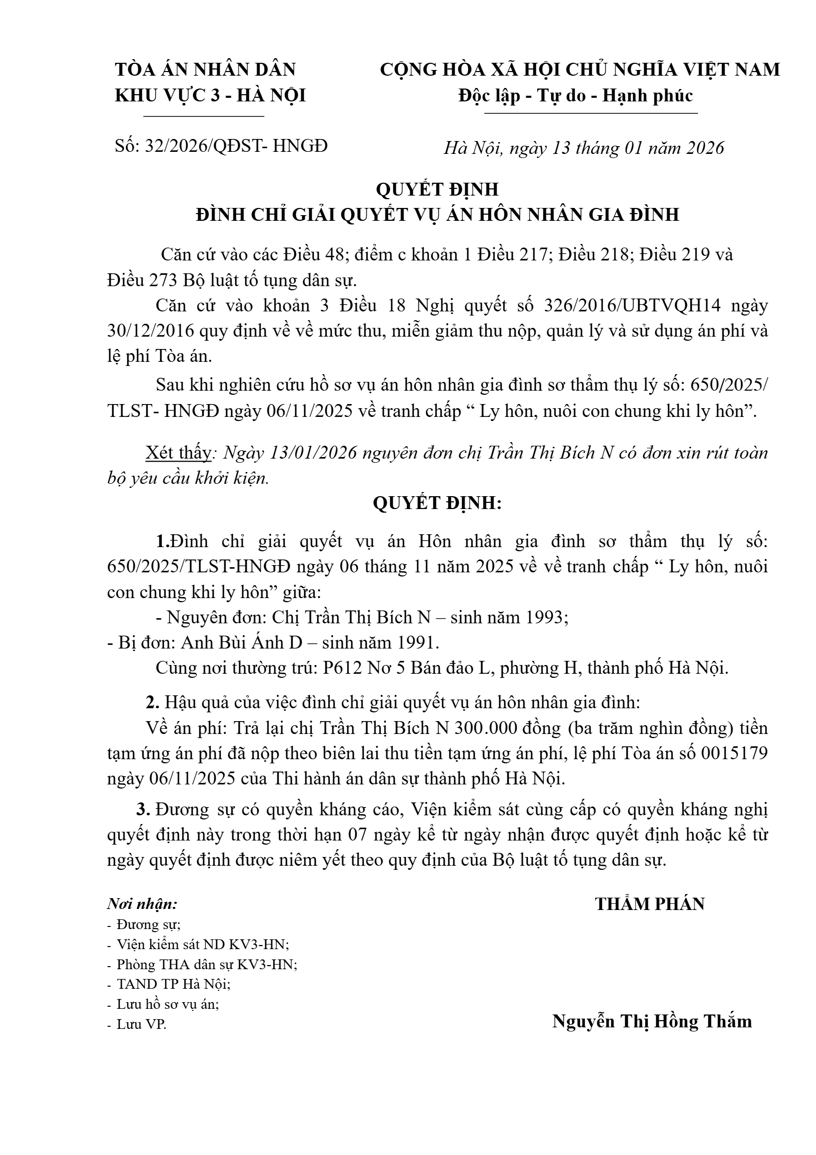 | Số hiệu: | 32/2026/QĐST-HNGĐ |
