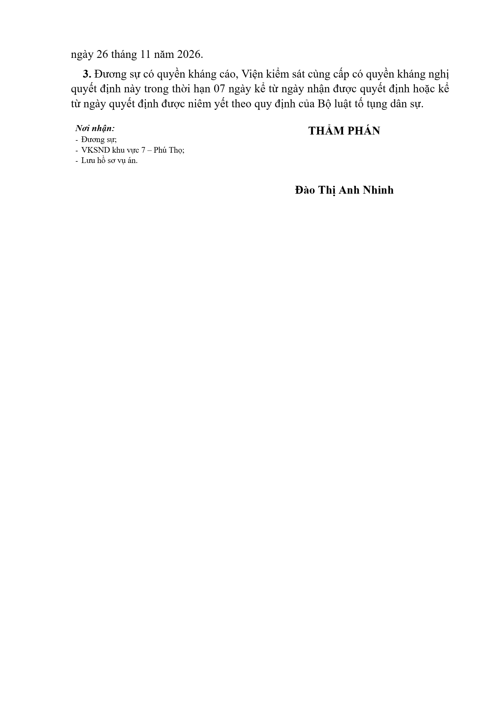 | Tòa án xét xử: | Tòa án nhân dân khu vực 7 - Phú Thọ, tỉnh Phú Thọ |