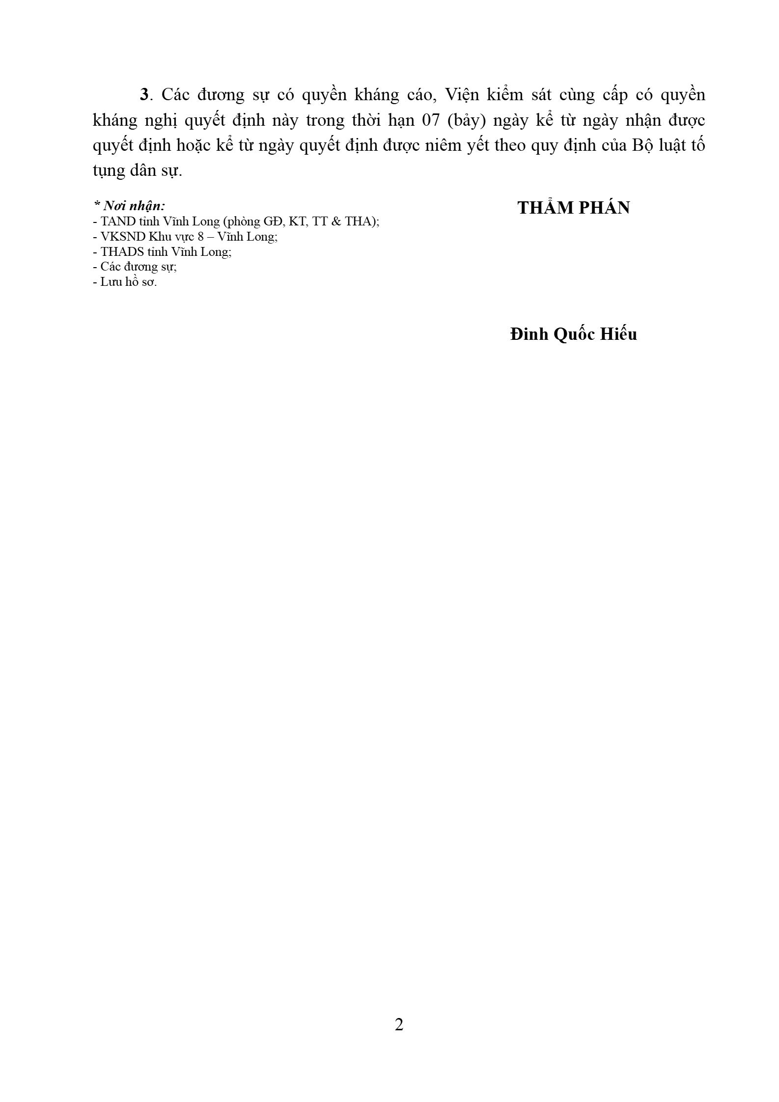 | Tòa án xét xử: | Tòa án nhân dân khu vực 8 - Vĩnh Long, tỉnh Vĩnh Long |