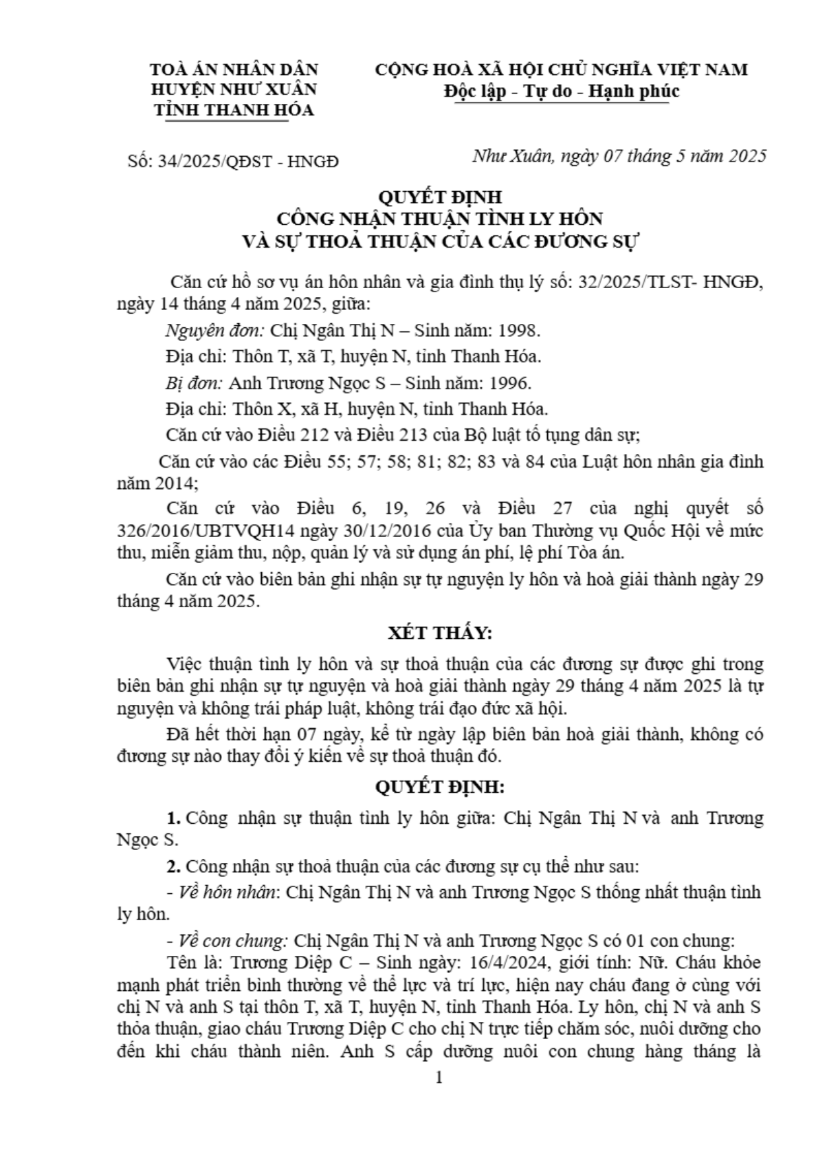 | Tên Quyết định: | Quyết định số 34/2025/QĐST-HNGĐ ngày 07/05/2025 của TAND huyện Như Xuân, tỉnh Thanh Hóa về vụ án ly hôn về mâu thuẫn gia đình |
