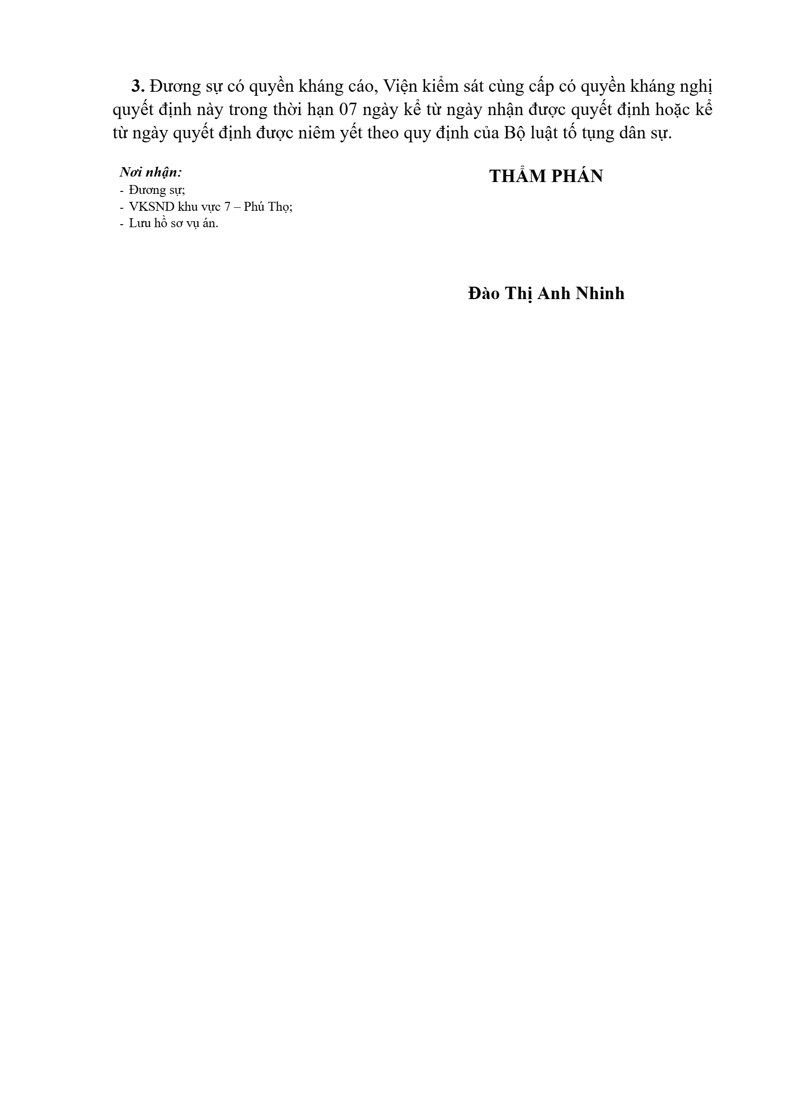 | Tòa án xét xử: | Tòa án nhân dân khu vực 7 - Phú Thọ, tỉnh Phú Thọ |