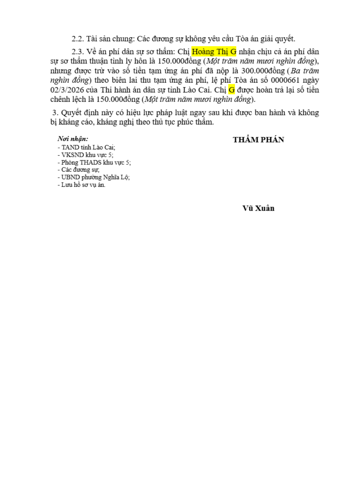 | Thông tin về vụ/việc: | Hoàng Thị G xin ly hôn Lục Văn B |