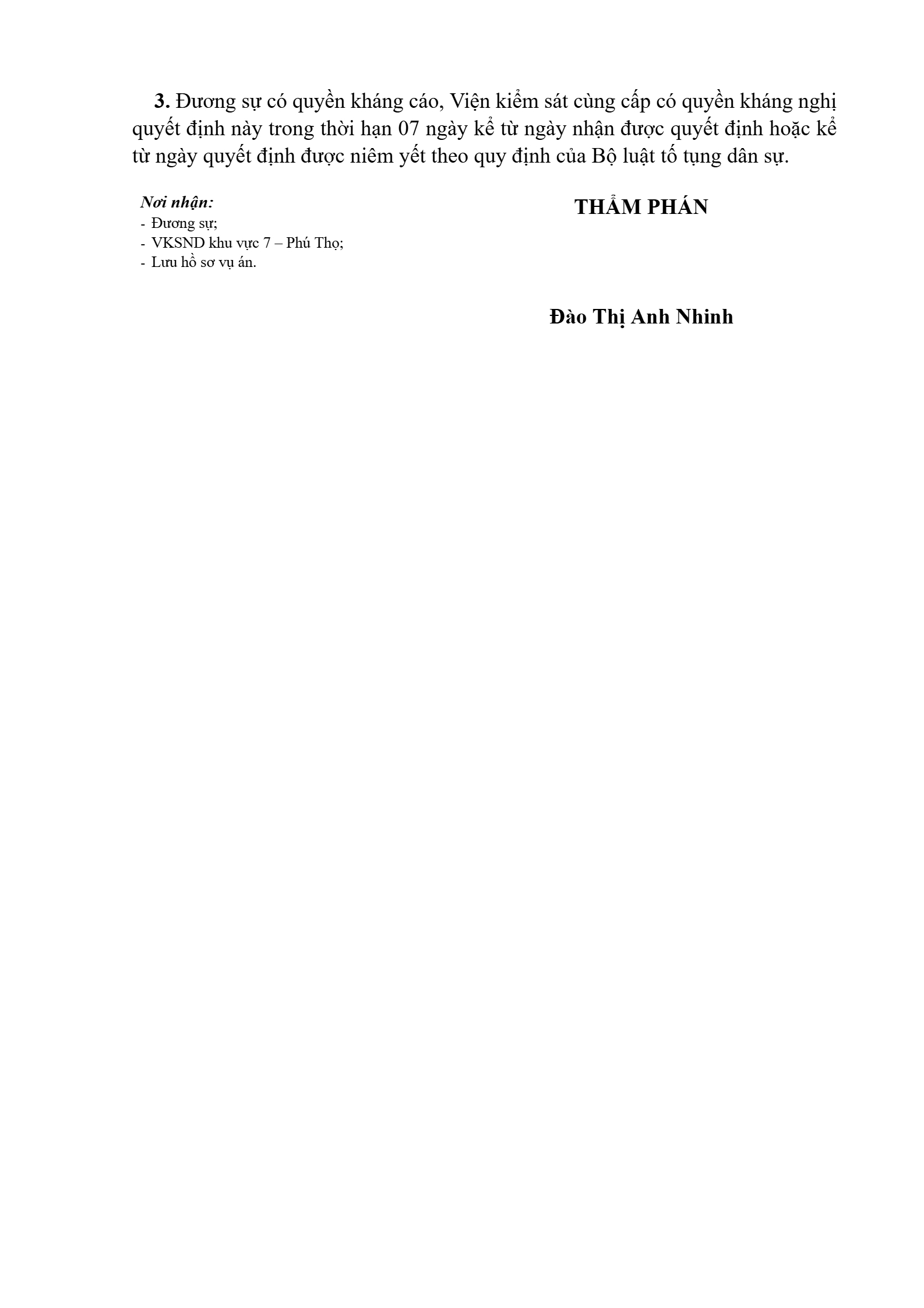 | Tòa án xét xử: | Tòa án nhân dân khu vực 7 - Phú Thọ, tỉnh Phú Thọ |
