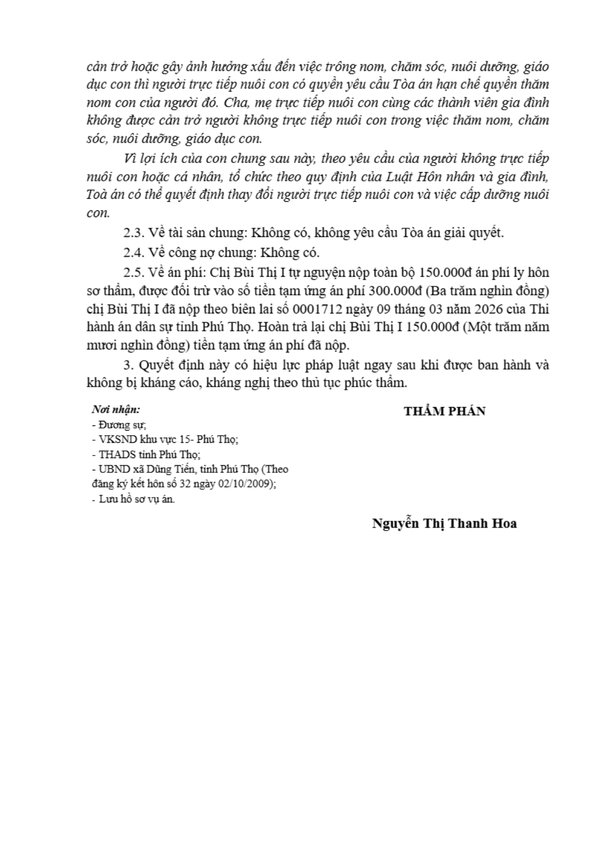 | Tòa án xét xử: | Tòa án nhân dân khu vực 15 - Phú Thọ, tỉnh Phú Thọ |