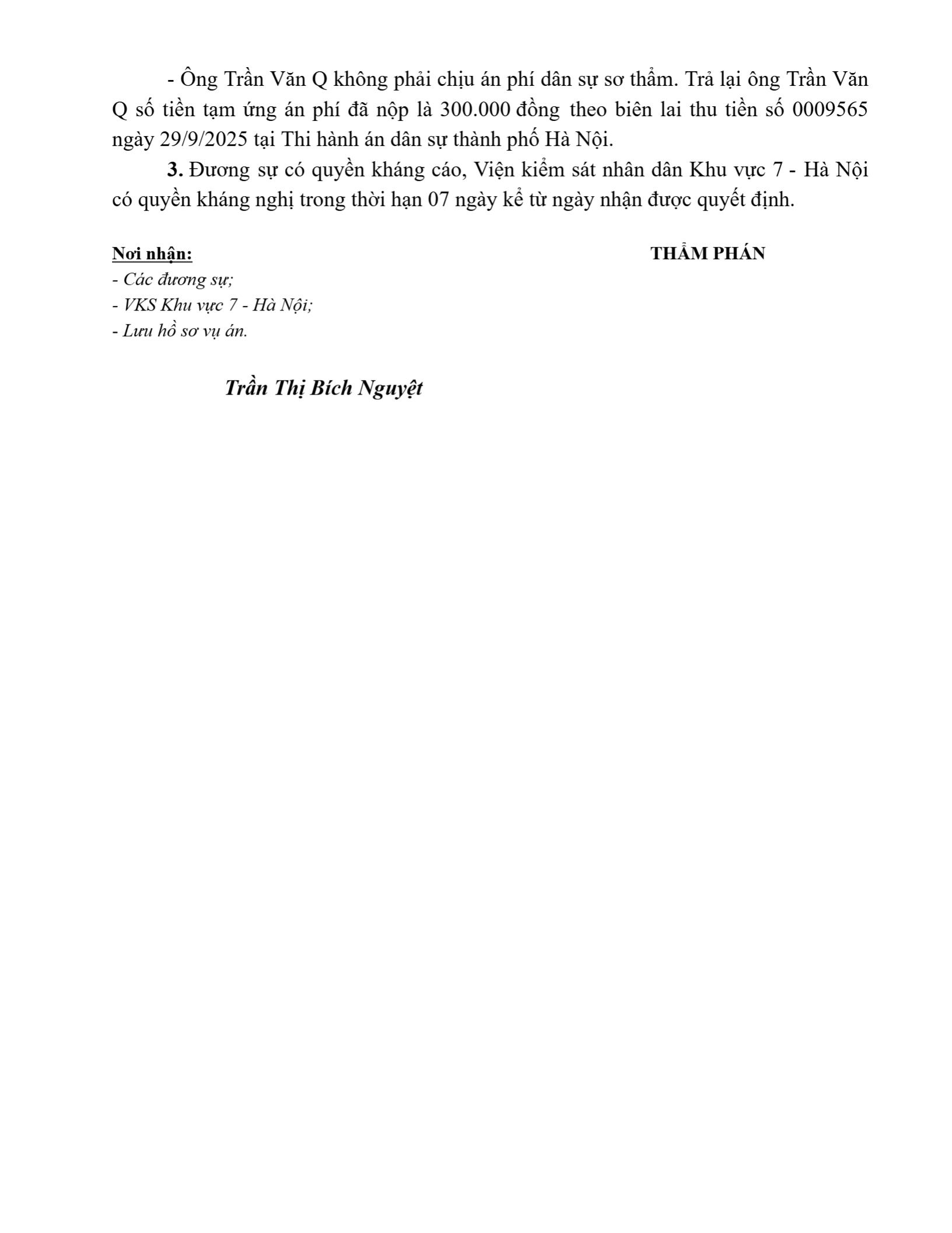 | Tòa án xét xử: | Tòa án nhân dân khu vực 7 - Hà Nội, TP. Hà Nội |
