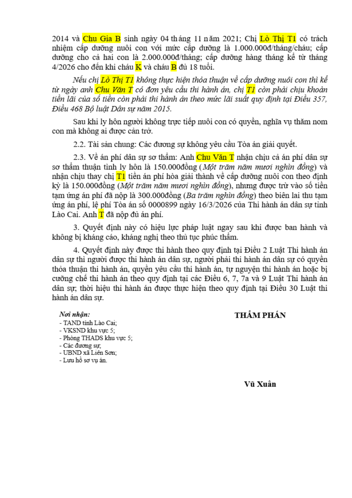 | Tòa án xét xử: | Tòa án nhân dân khu vực 5 - Lào Cai, tỉnh Lào Cai |