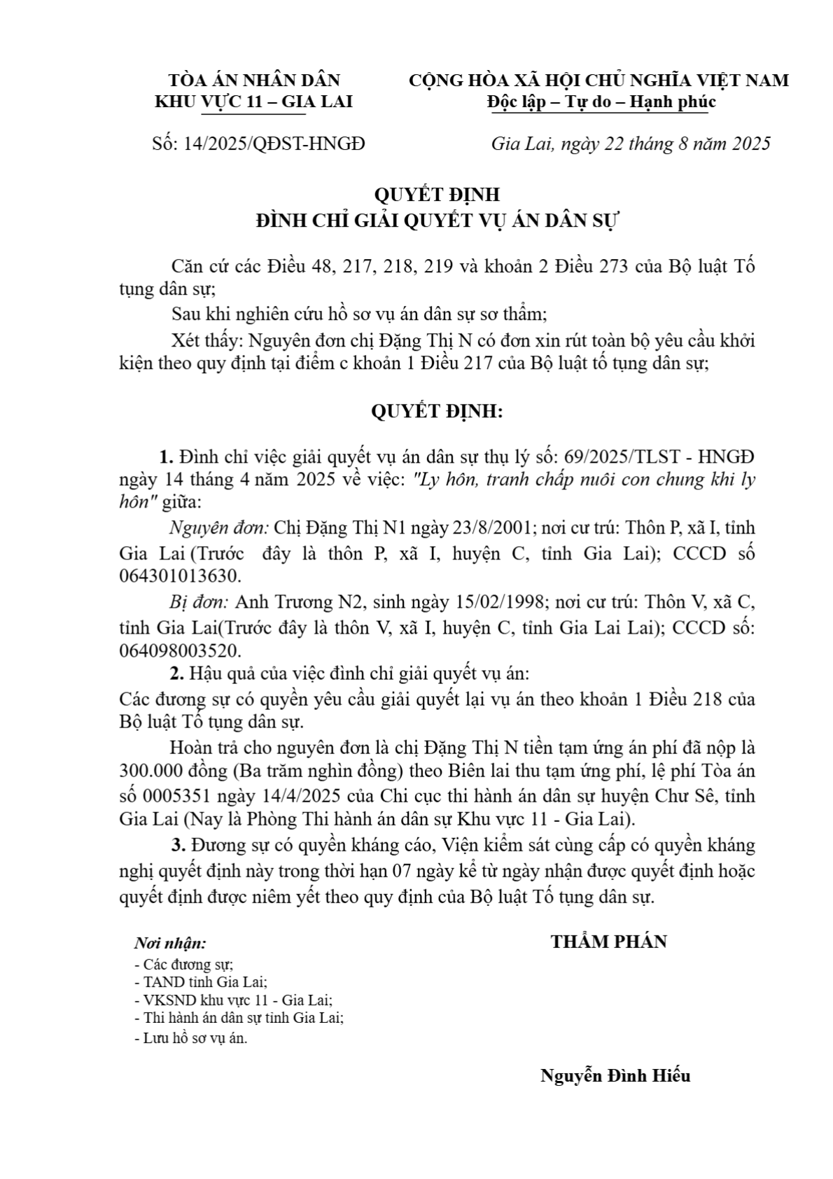 | Tòa án xét xử: | Tòa án nhân dân khu vực 11 - Gia Lai, tỉnh Gia Lai |