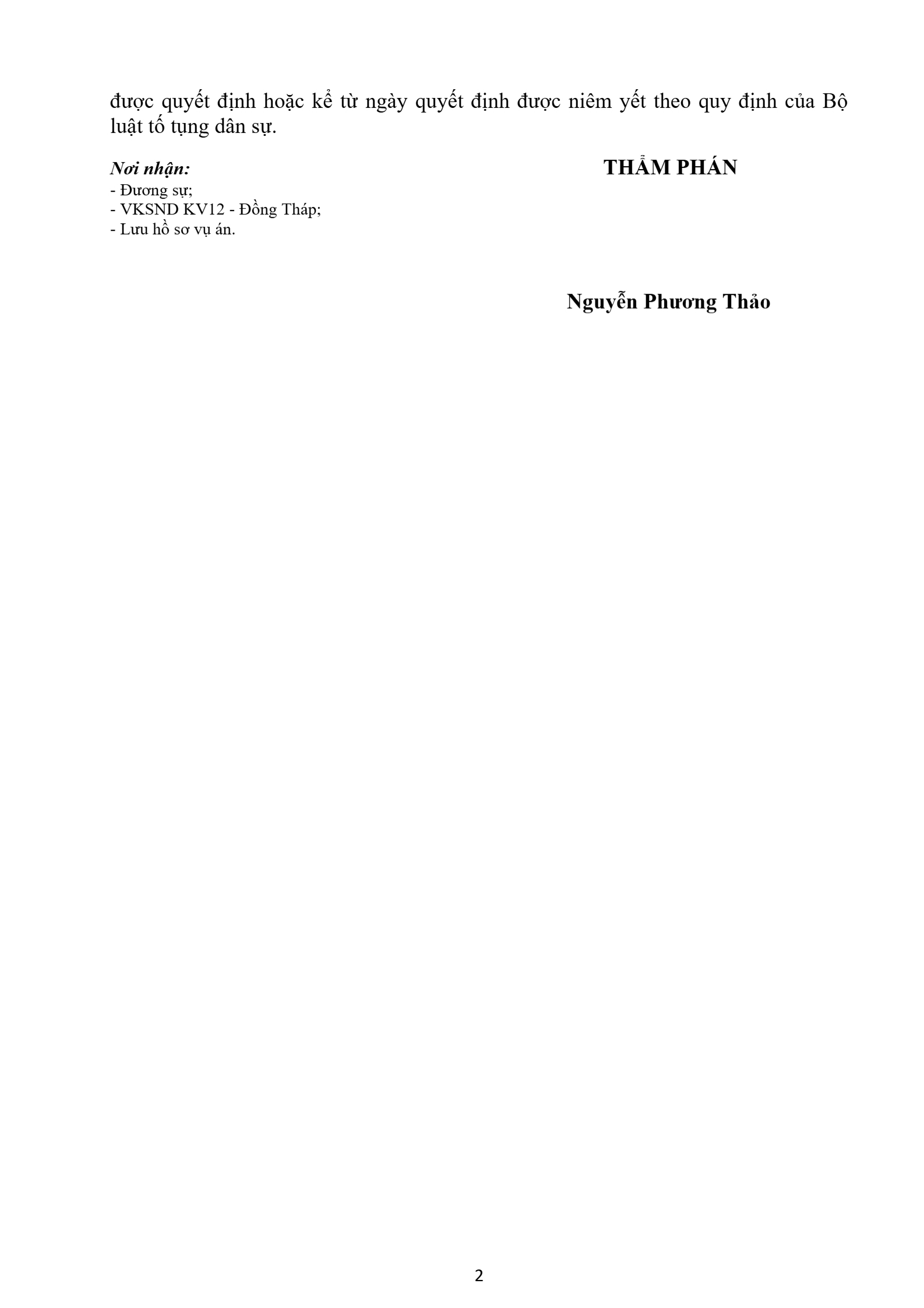 | Tòa án xét xử: | Tòa án nhân dân khu vực 12 - Đồng Tháp, tỉnh Đồng Tháp |