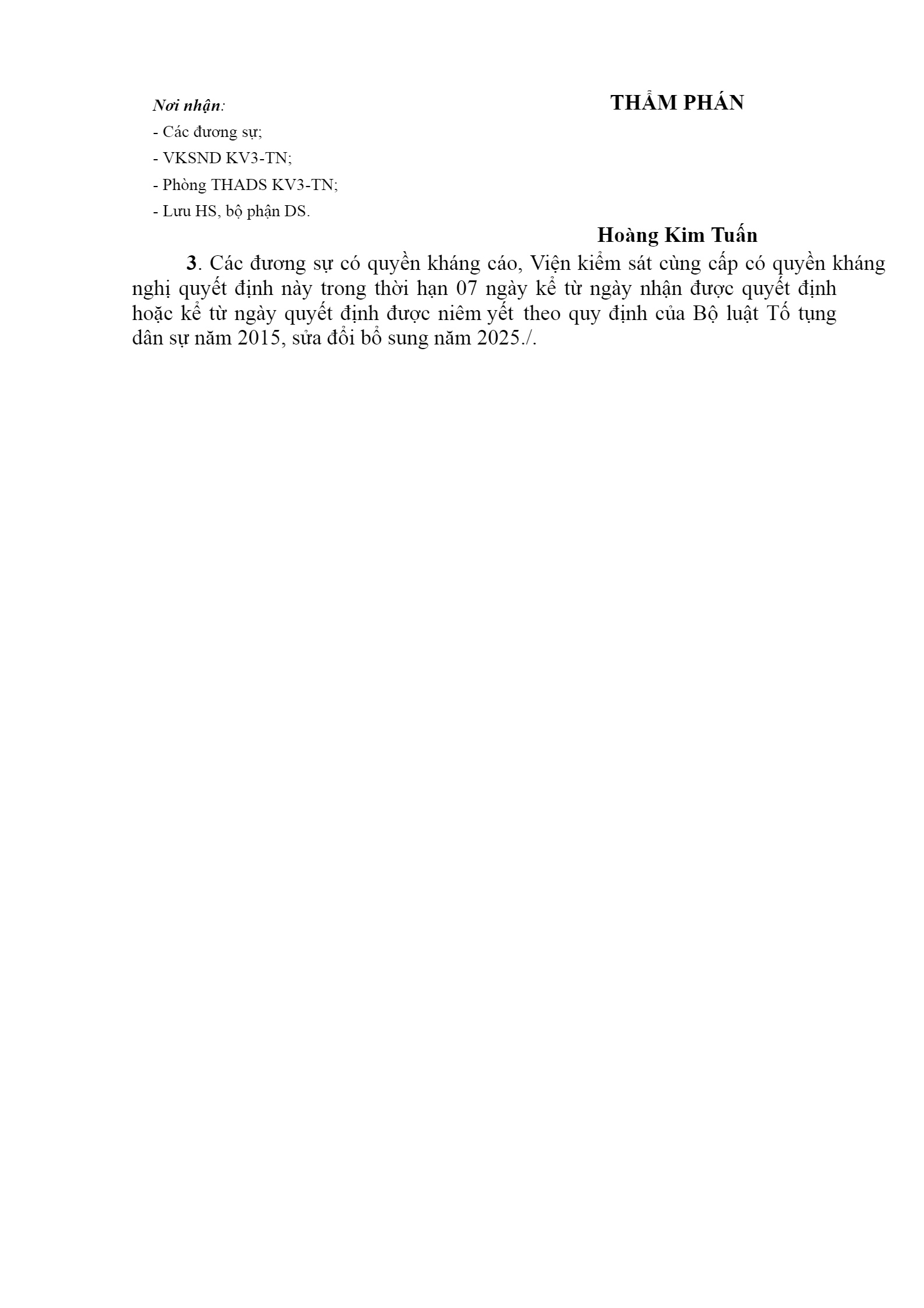 Quyết định số 41/2025/QĐST ngày 25/09/2025 của Tòa án nhân dân khu vực 3 - Thái Nguyên, tỉnh Thái Nguyên về tranh chấp hợp đồng tín dụng