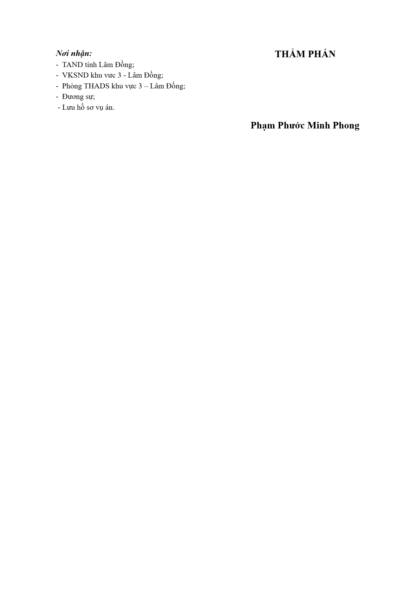 | Tòa án xét xử: | Tòa án nhân dân khu vực 3 - Lâm Đồng, tỉnh Lâm Đồng |