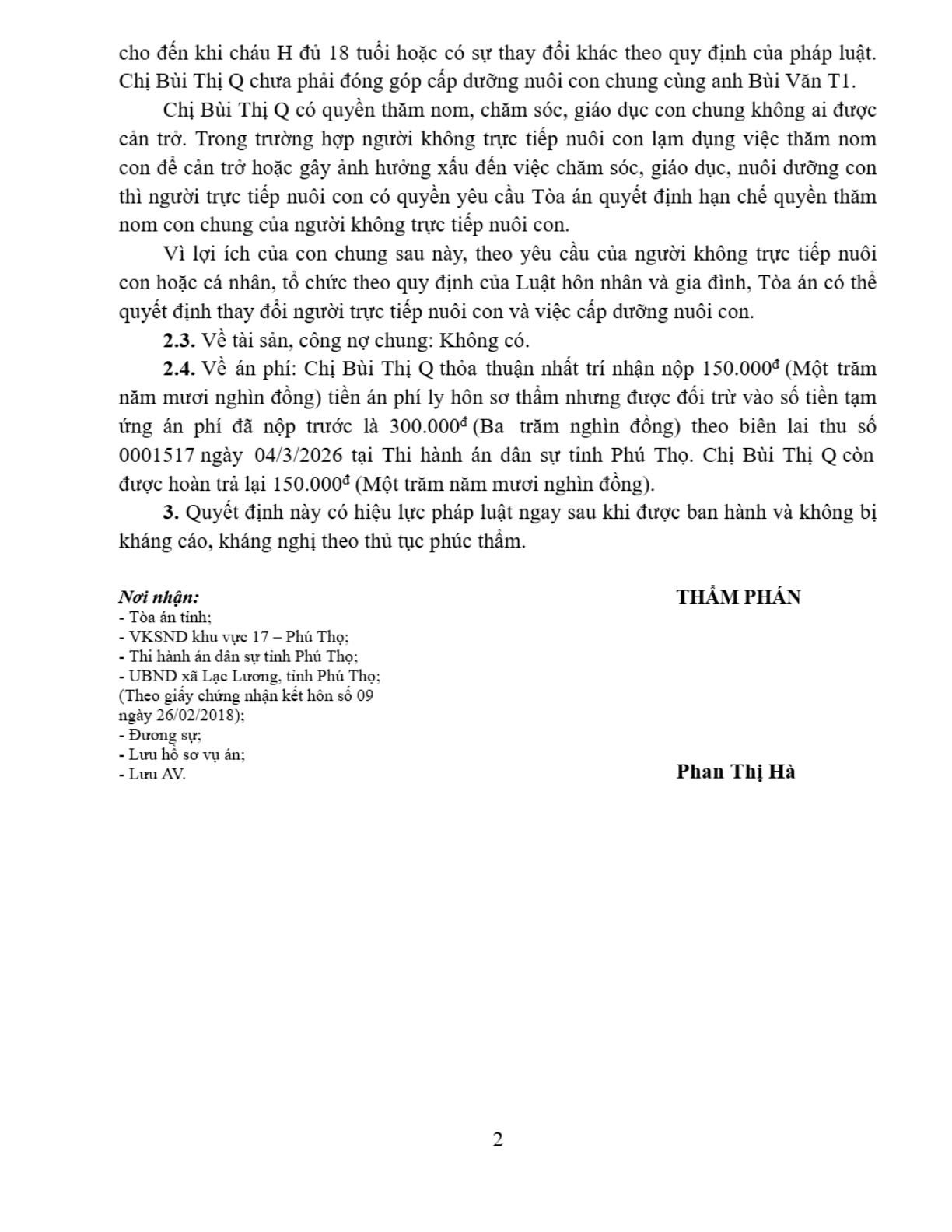 | Tòa án xét xử: | Tòa án nhân dân khu vực 17 - Phú Thọ, tỉnh Phú Thọ |