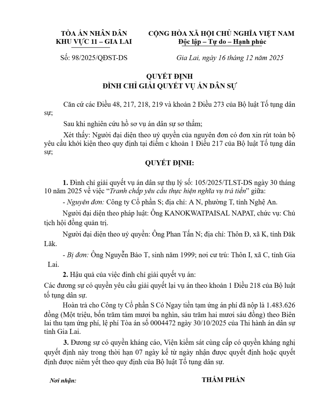 | Tòa án xét xử: | Tòa án nhân dân khu vực 11 - Gia Lai, tỉnh Gia Lai |