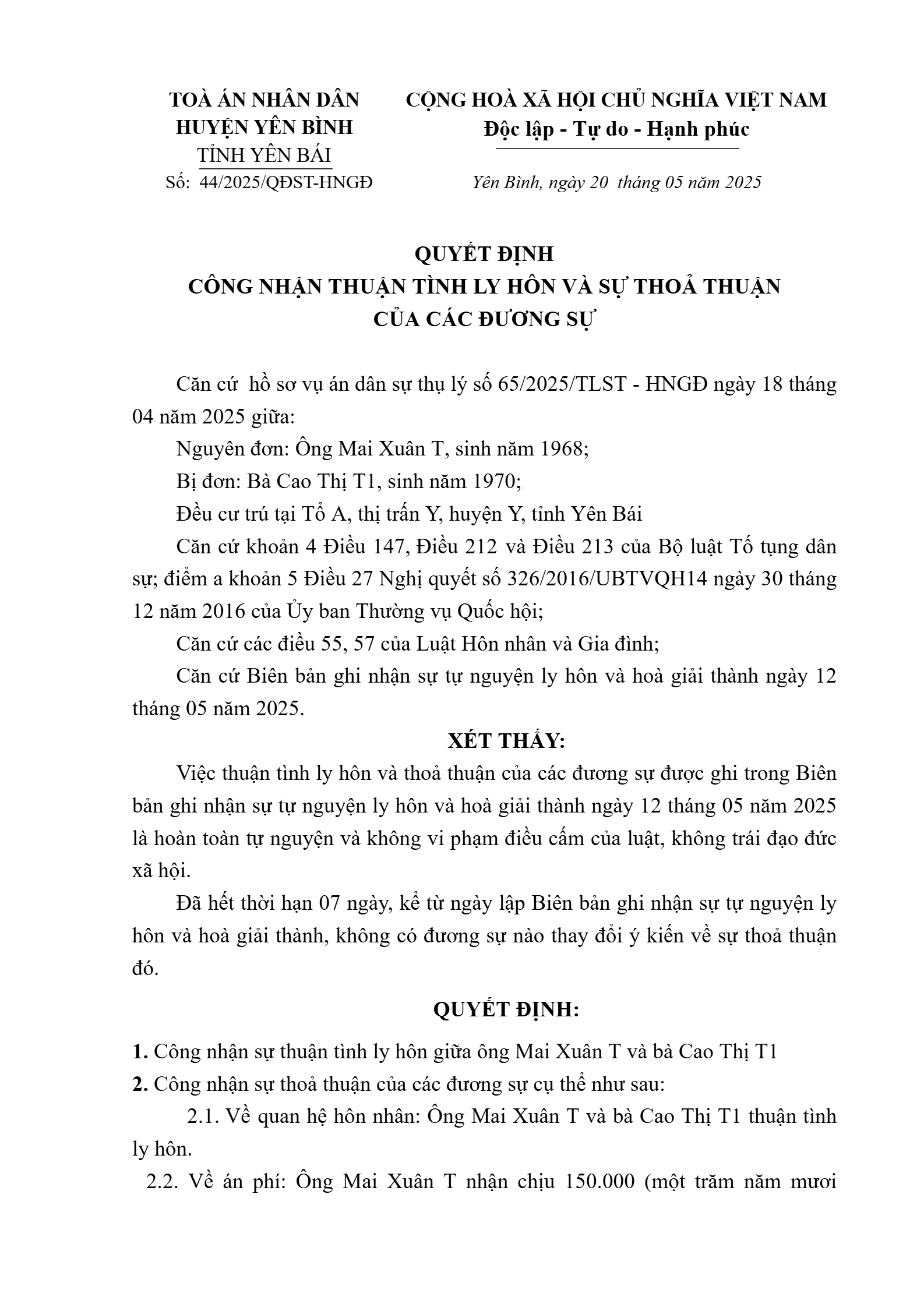 Quyết định số 44/2025/HNGĐ-ST